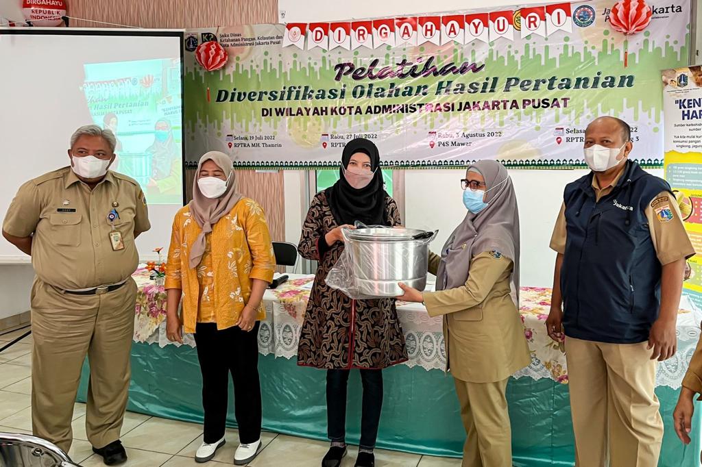 Suku Dinas Ketahanan Pangan Kelautan dan Pertanian (KPKP) Kota Administrasi Jakarta Pusat menyelenggarakan pelatihan diversifikasi olahan hasil pertanian di Ruang Publik Terpadu Ramah Anak (RPTRA) Tanah Abang 3, Kelurahan Petojo Selatan, Kecamatan Gambir, Selasa (9/8).