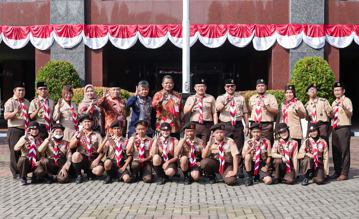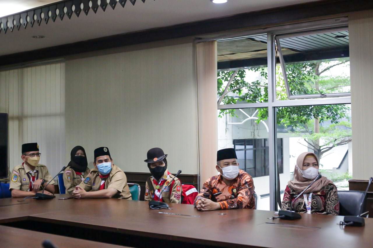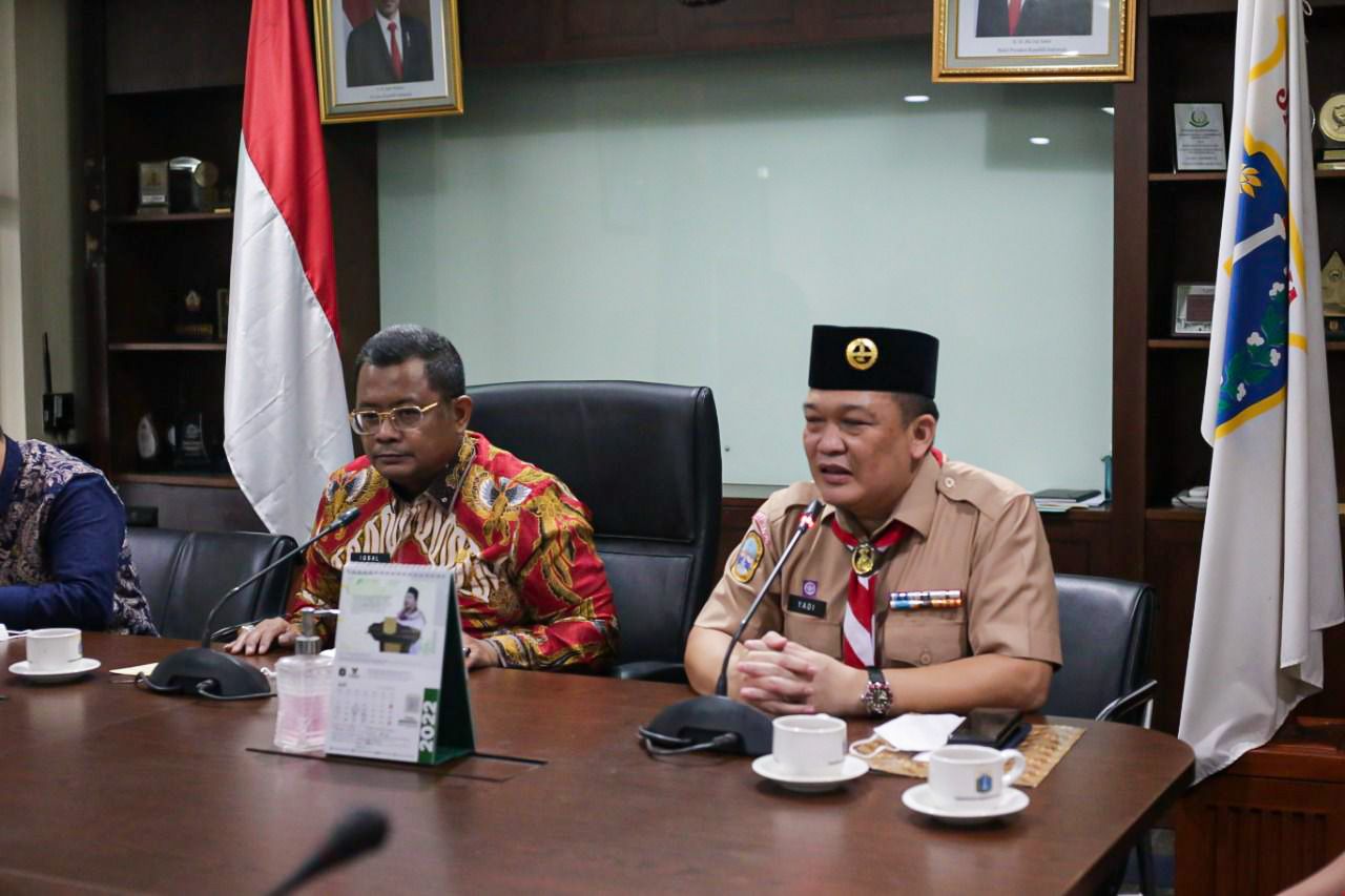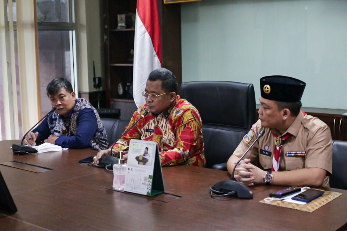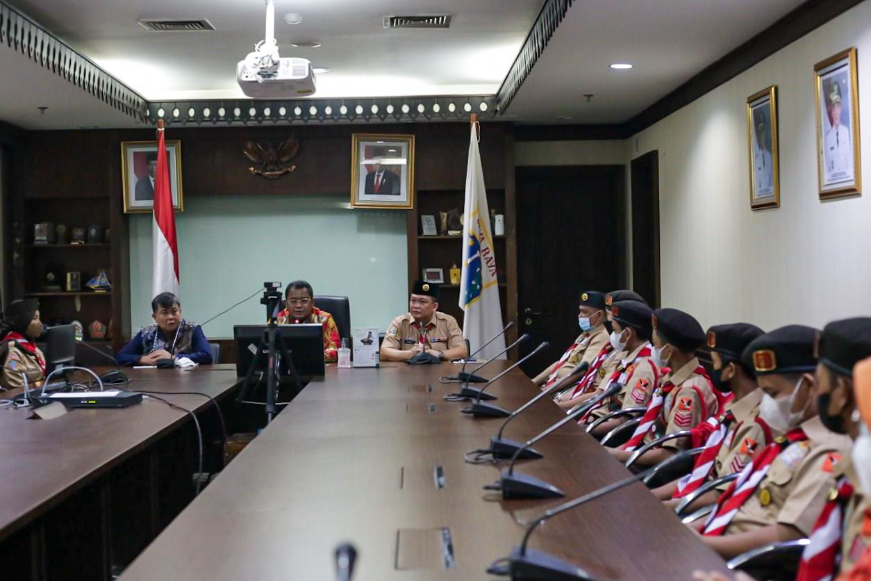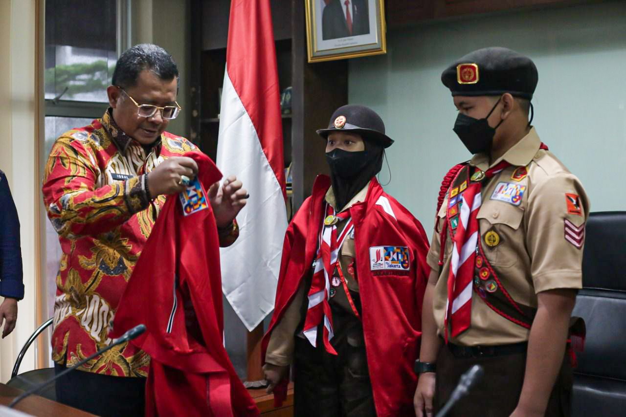 Sekretaris Kota Jakarta Pusat Iqbal Akbarudin melepas peserta Jambore Nasional ke-XI Kwartir Cabang (Kwarcab) Kota Administrasi Jakarta Pusat di Ruang Rapat Walikota, Kantor Wali Kota Jakarta Pusat, Kamis (11/8).