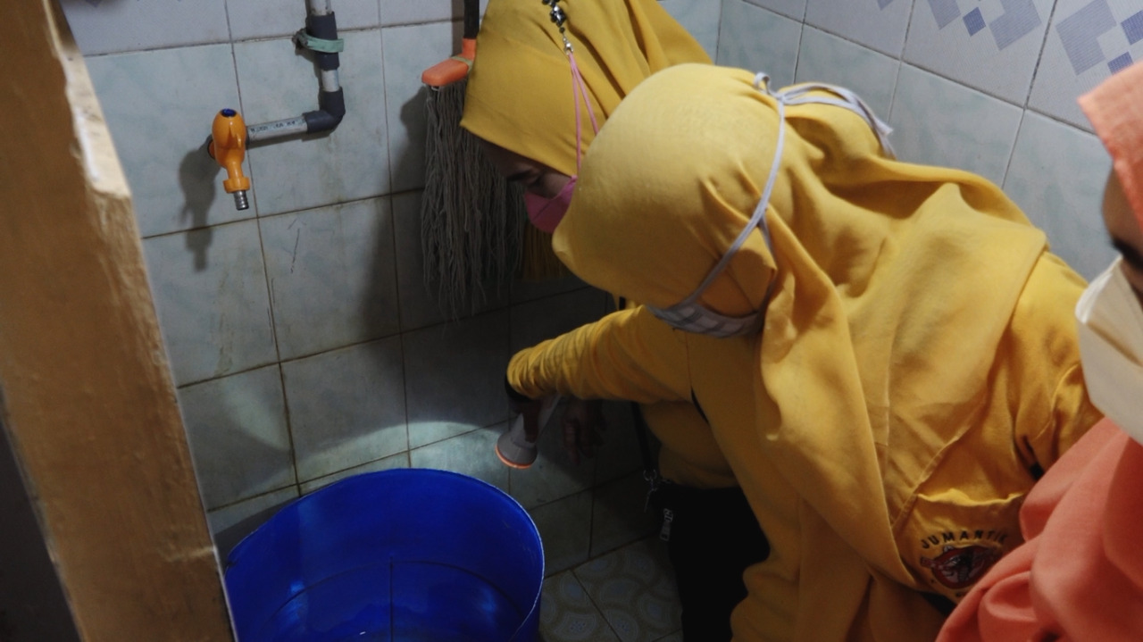 Untuk mencegah berkembang biaknya nyamuk aedes aegypti sebagai penular DBD, Kelurahan Cideng bersama Ketua RW 07 dan para kader Jumantik melakukan pemberantasan sarang nyamuk (PSN) ke tiap-tiap rumah warga dengan mengecek tempat penampungan air, dispenser, dan kolam ikan.
