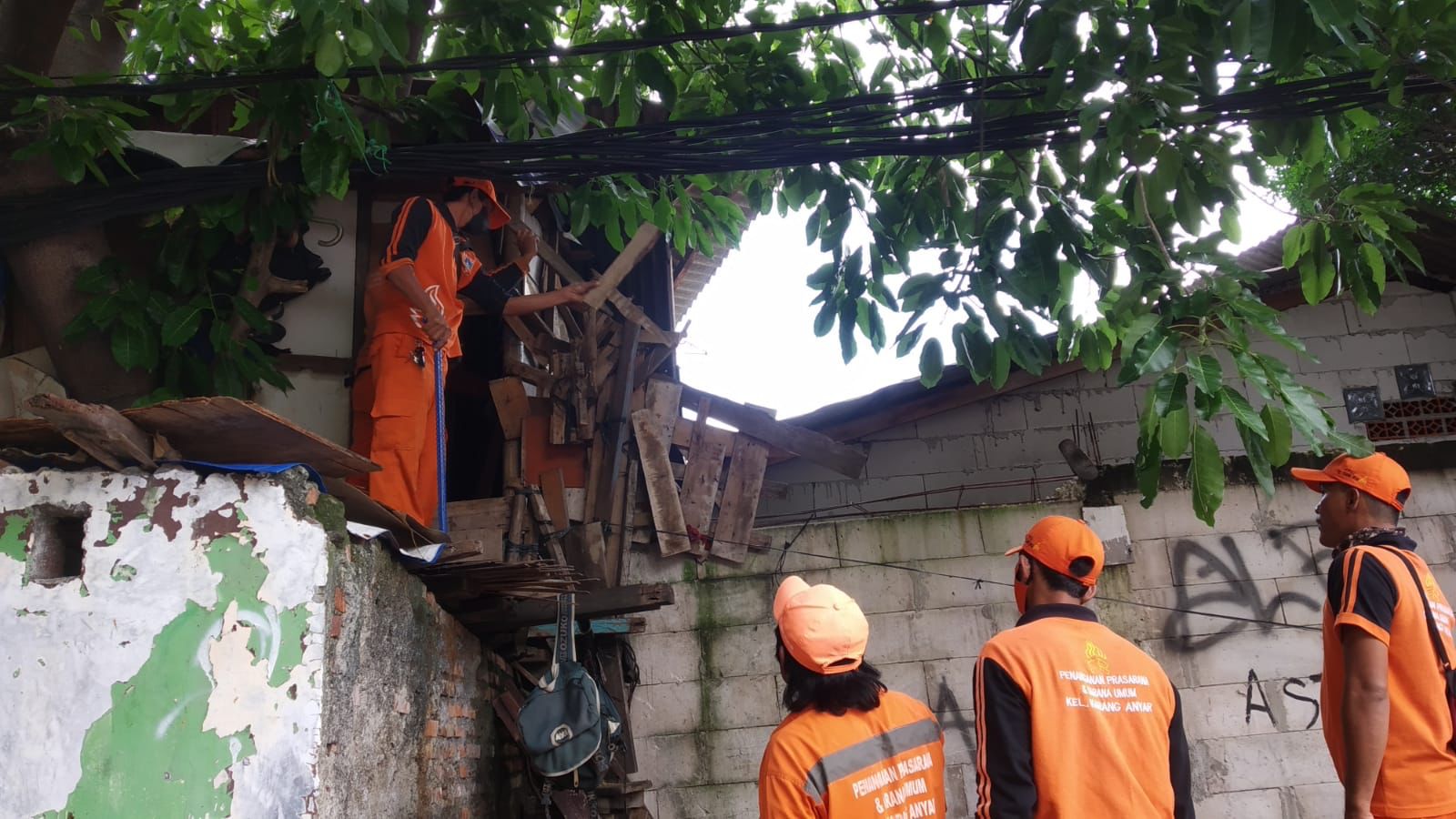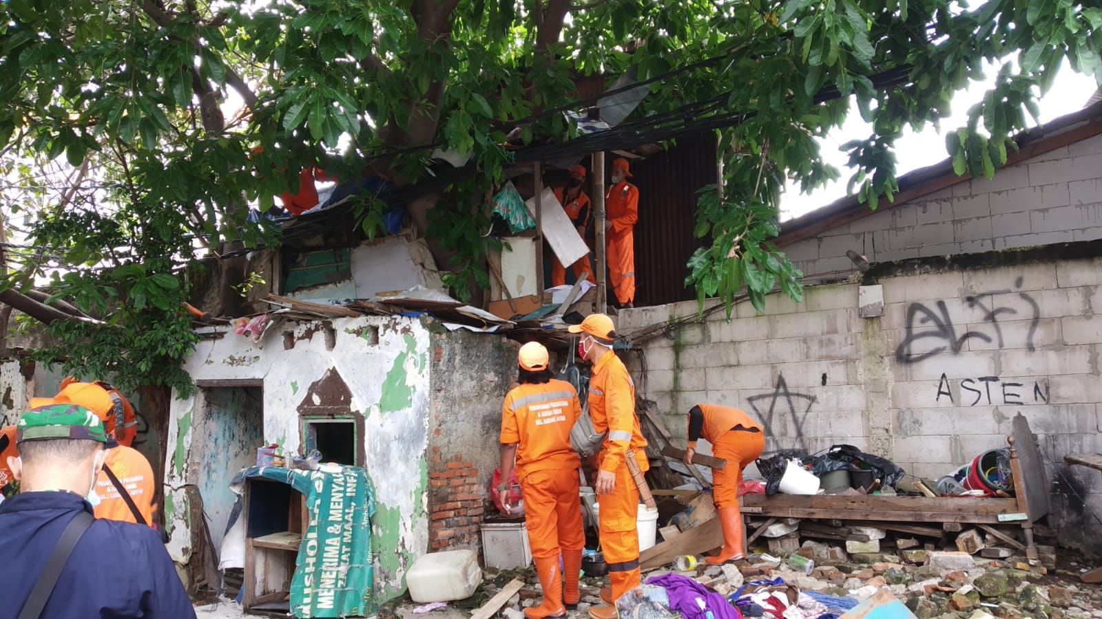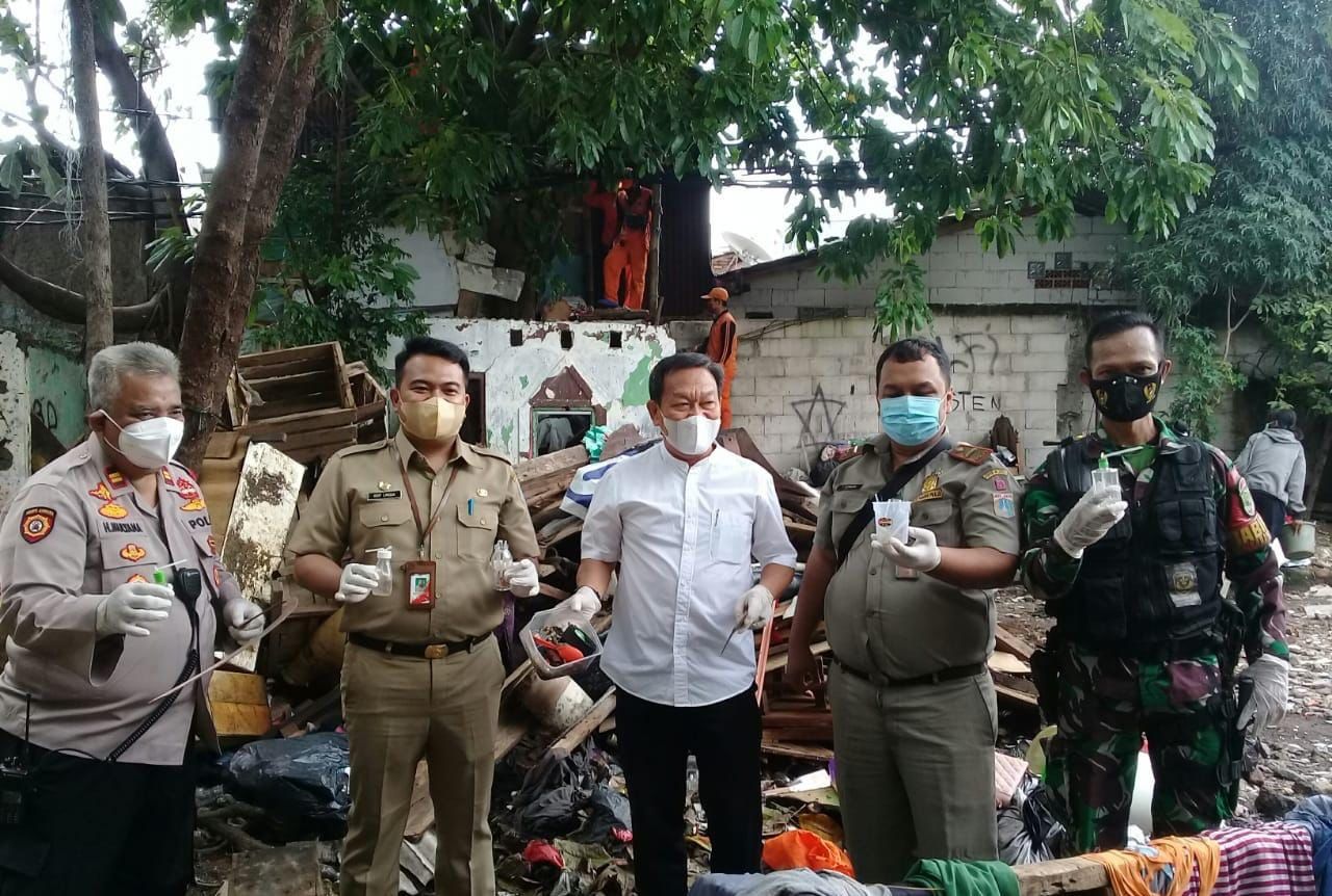 Plt Lurah Karang Anyar, Arief Lingga bersama jajaran terkait melakukan pembersihan lokasi yang disinyalir dijadikan tempat penyalahgunaan narkoba jenis sabu di Jalan Ekonomi Raya RT 001 RW 008, Kelurahan Karang Anyar, Kecamatan Sawah Besar, Jakarta Pusat, Senin (7/2).