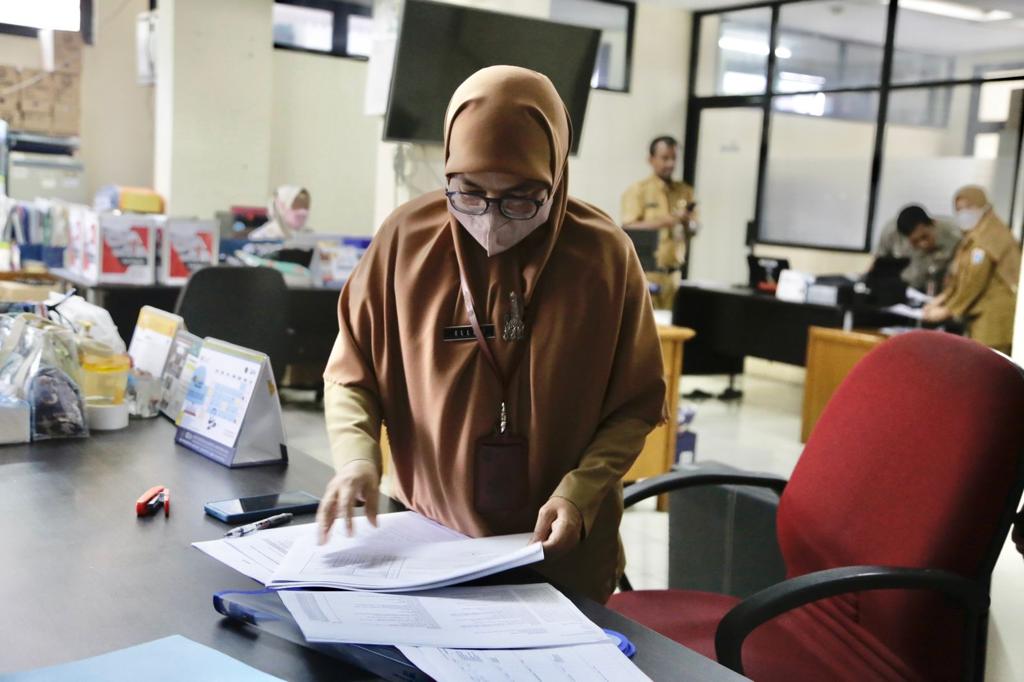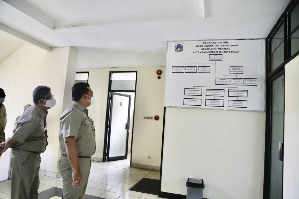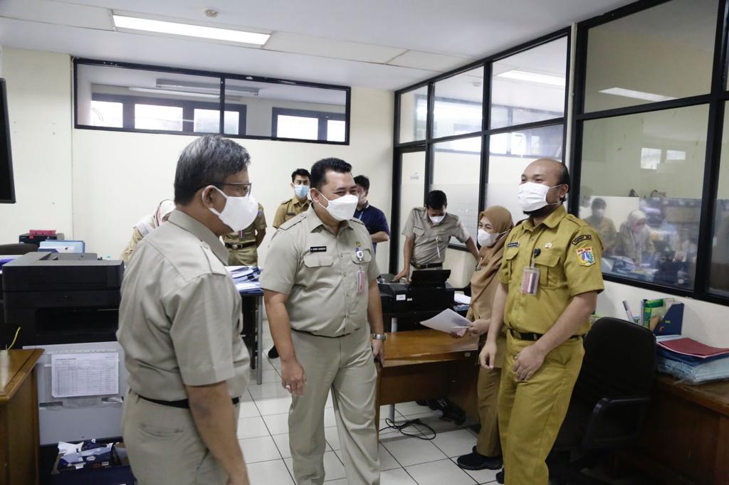 Asisten Pemerintahan (Aspem) Kota Administrasi Jakarta Pusat Denny Ramdany melakukan pelaksanan pembinaan dan monitoring pelayanan serta kinerja pegawai di Kantor Kelurahan Pegangsaan, Jalan Taman Amir Hamzah, Kecamatan Menteng, Selasa (2/8).