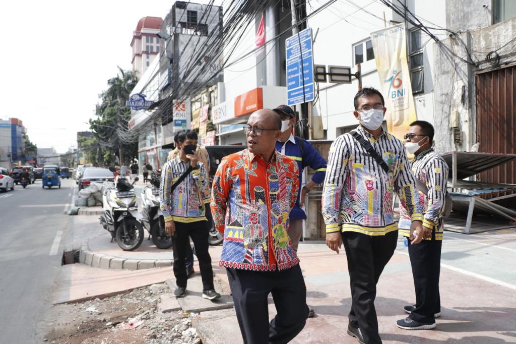 Pemerintah Kota Administrasi Jakarta Pusat melakukan peninjauan lapangan revitalisasi trotoar di Jalan Pecenongan, Kelurahan Kebon Kelapa, Kecamatan Gambir, Kamis (4/8).