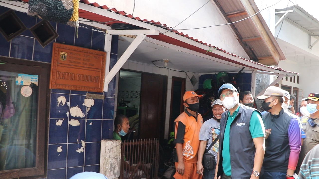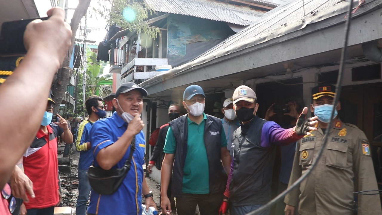 Wali Kota Administrasi Jakarta Pusat Dhany Sukma meninjau lokasi kebakaran di Jalan Setia Kawan 2, RT 005 RW 007, Kelurahan Duri Pulo, Kecamatan Gambir, Jakarta Pusat, Minggu (20/3).