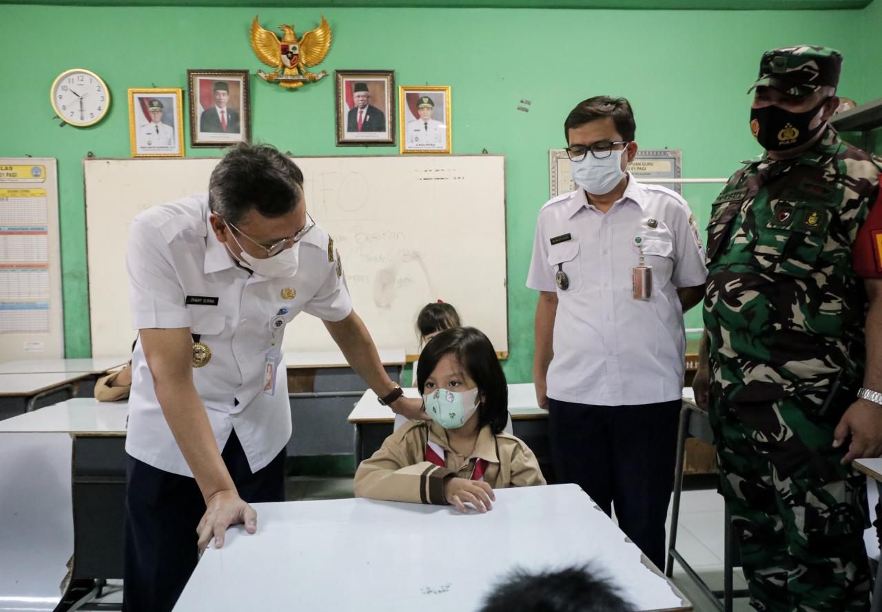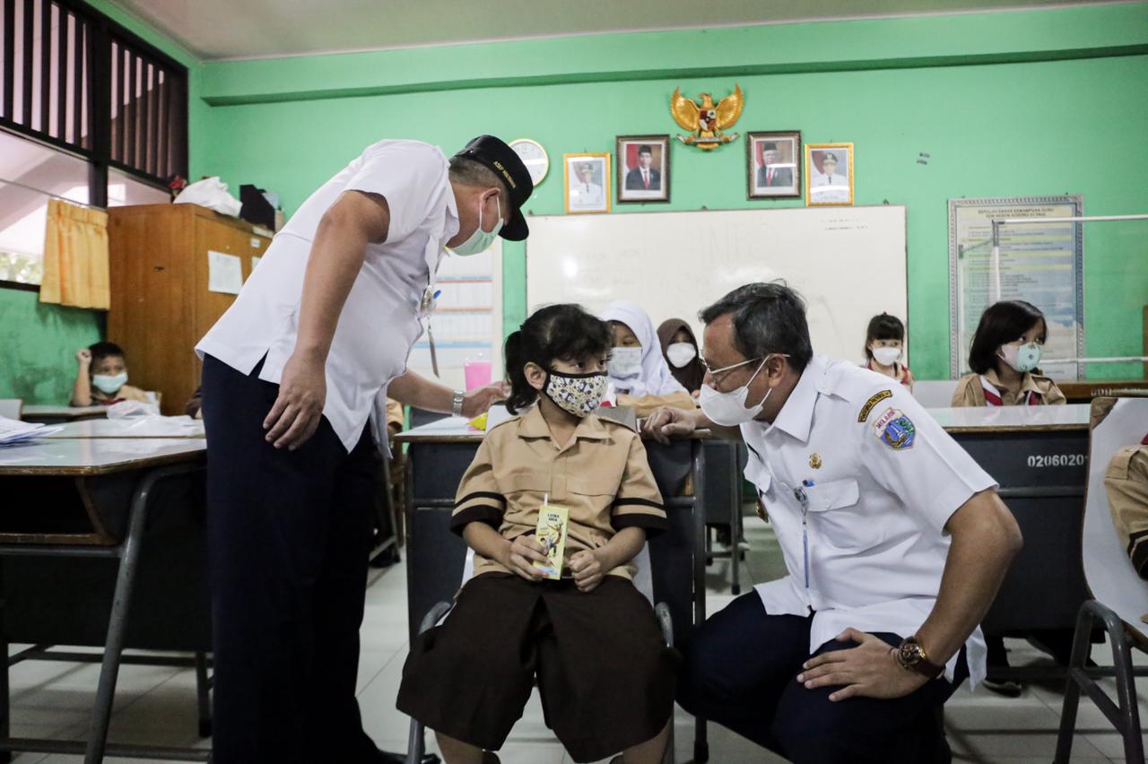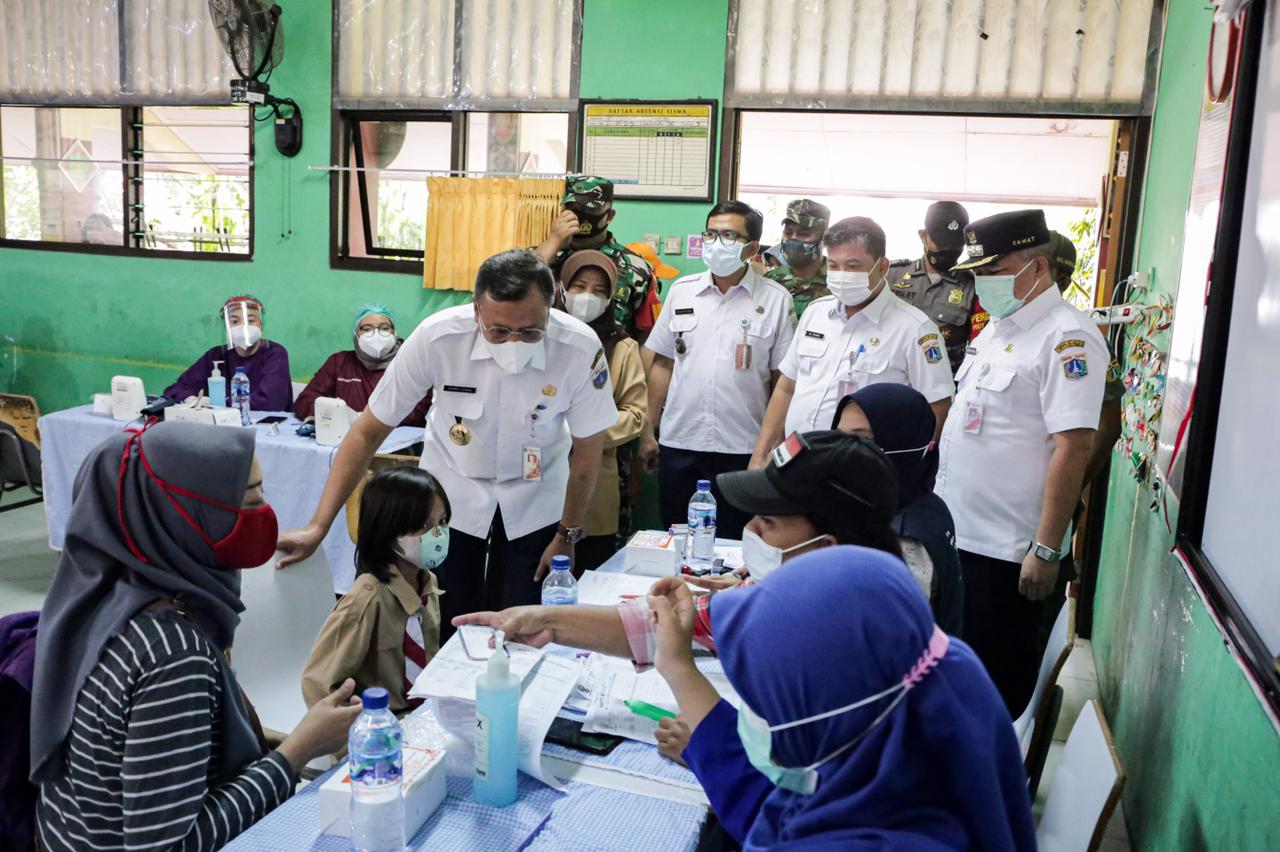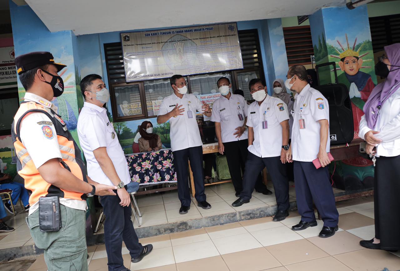 Wali Kota Administrasi Jakarta Pusat Dhany Sukma melakukan peninjauan pelaksanaan vaksinasi anak usia 6 hingga 11 tahun di tiga sekolah dasar (SDN Kebon Kosong 01 Pagi, SDN Kebon Kelapa 02 Pagi, dan SDN Karet Tengsin 13) Rabu (12/1).