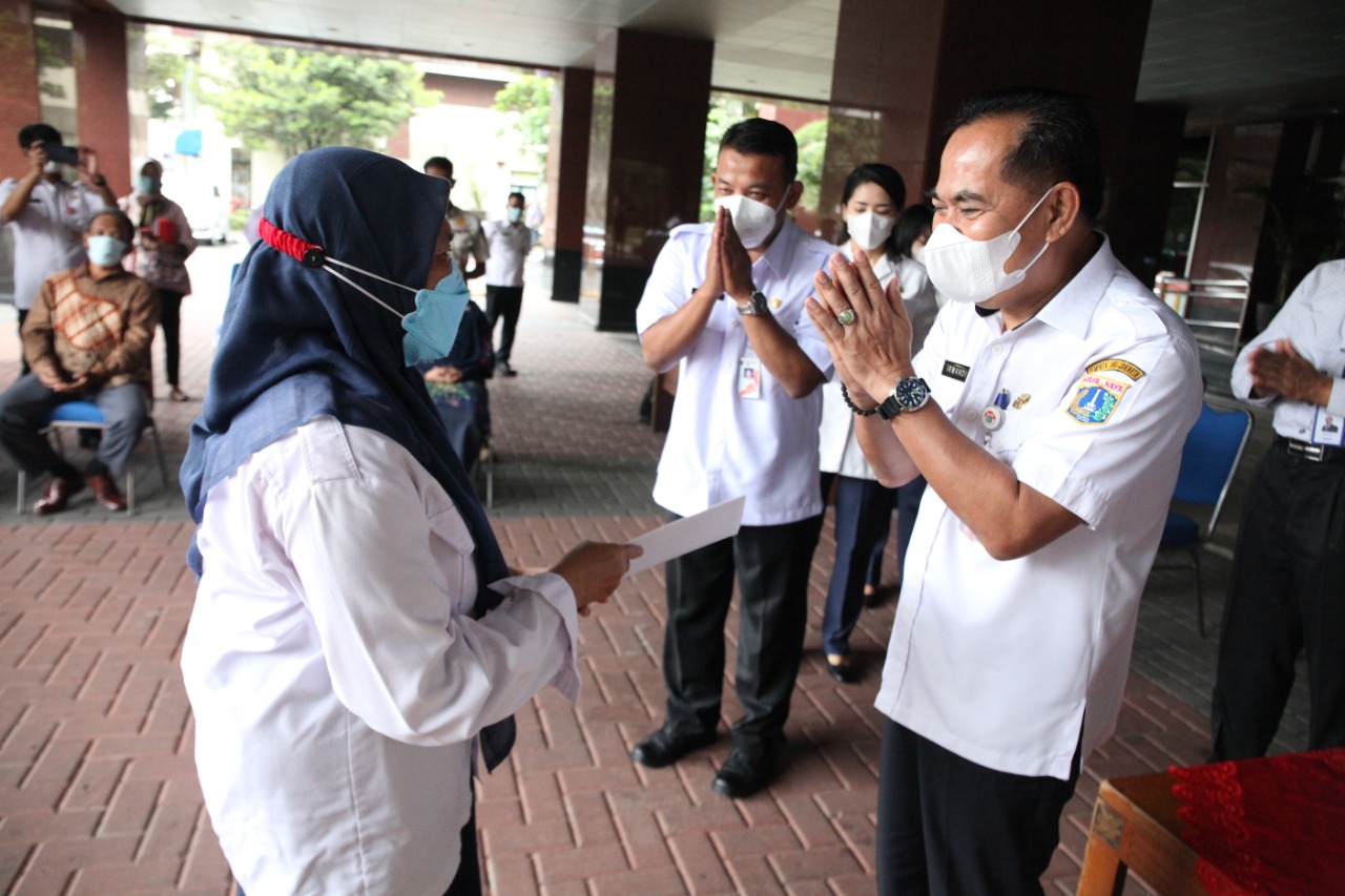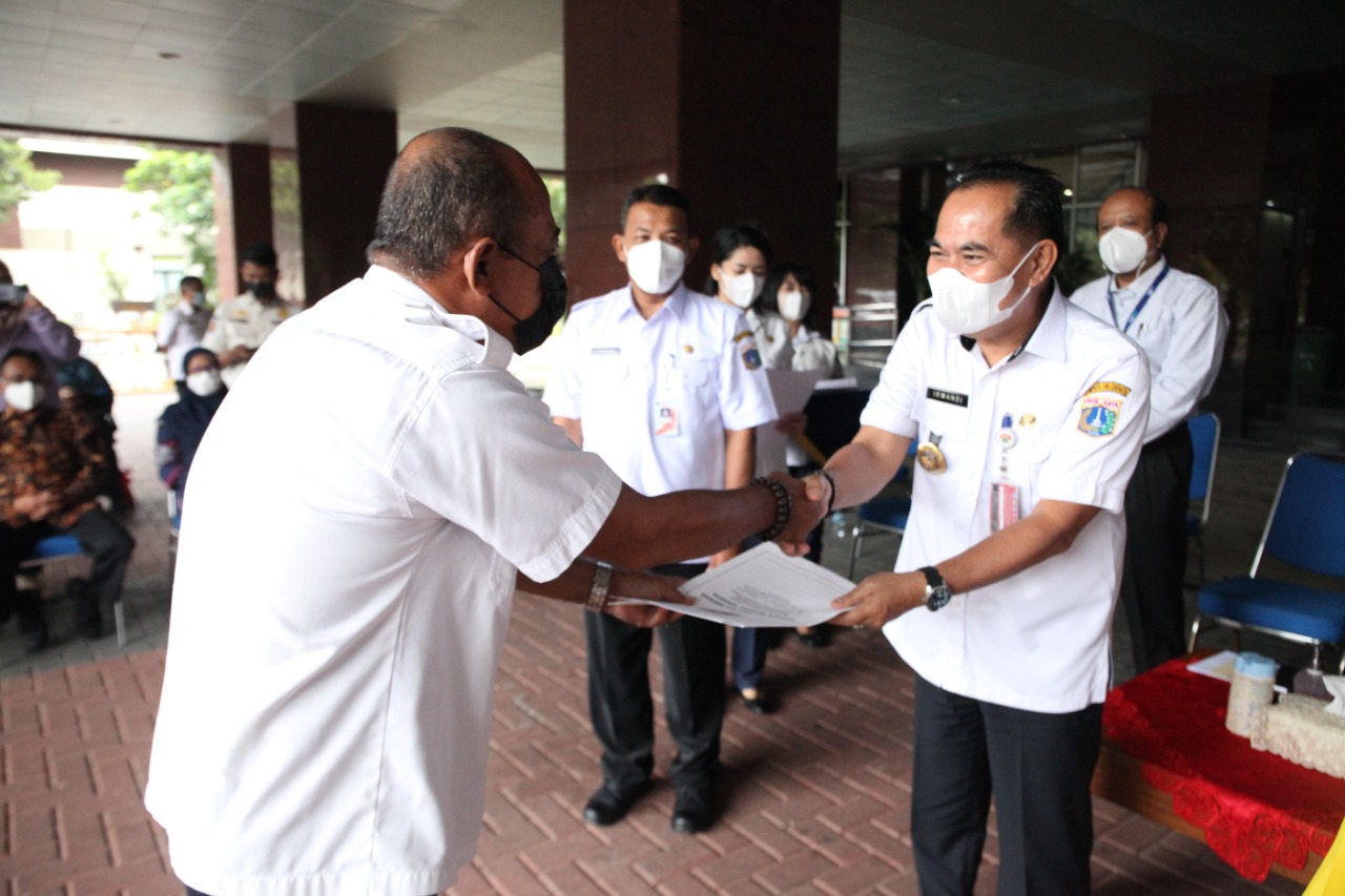 Pemerintah Kota (Pemkot) Administrasi Jakarta Pusat melalui Suku Badan Kepegawaian dalam penyerahan SK Pensiun Batas Usia Pensiun (BUP) Terhitung Mulai Tanggal (TMT) 1 Februari 2022 dan SK Pensiun janda-duda.