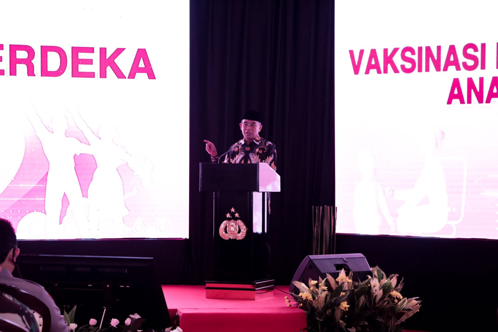 Dalam rangka menekan laju penyebaran Covid-19, Polri meluncurkan program Vaksinasi Merdeka Anak yang digelar serentak di seluruh wilayah Indonesia. Pelaksanaan vaksinasi ini melibatkan tenaga kesehatan dari Polri dan TNI.