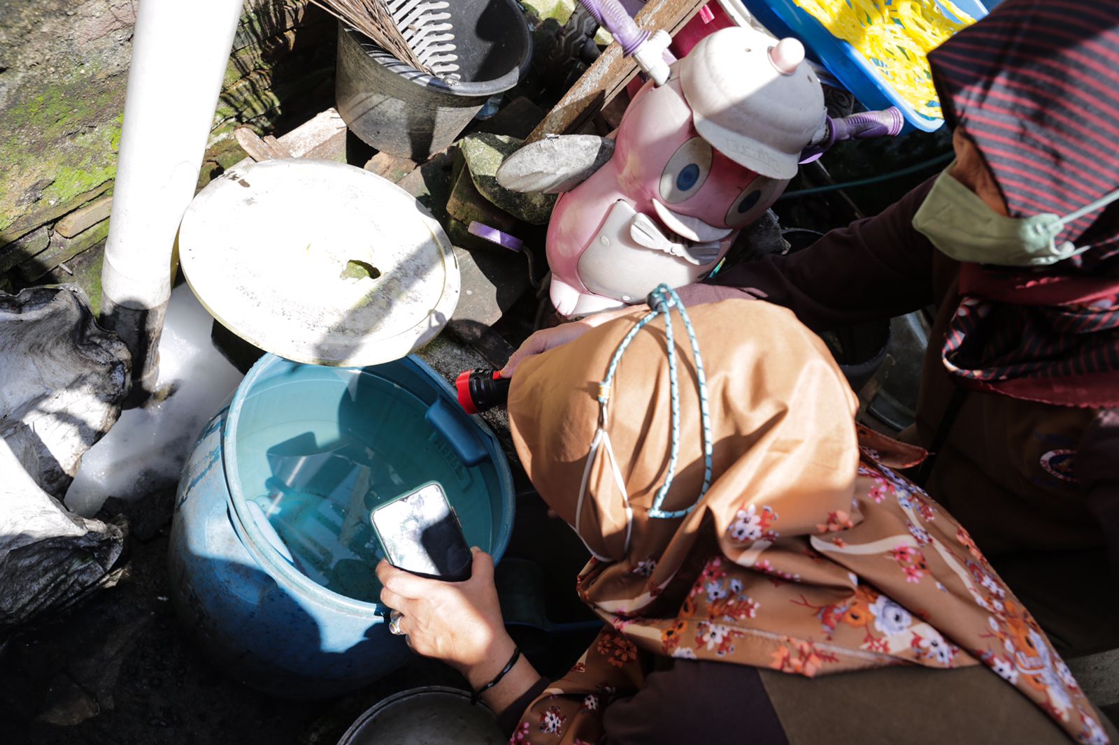 Lurah Pengangsaan, Parsiyo bersama Kader Jumantik Kelurahan Pengangsaan mengadakan kegiatan Pemberantasan Sarang Nyamuk (PSN) di lingkungan RW 03, Kelurahan Pegangsaan, Jumat (21/1).