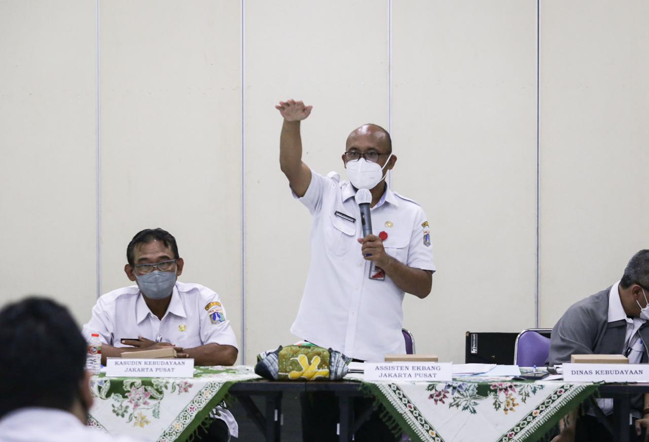 Asisten Perekonomian dan Pembangunan Setko Administrasi Jakarta Pusat Bakwan Ferizan Ginting menghadiri Sosialisasi Rencana Pembangunan Gapura Little India Pasar Baru yang diselenggarakan Dinas Pariwisata dan Kebudayaan DKI Jakarta di ruang Meeting Hotel Bunga-bunga, Jalan Antara Nomor 13, Kelurahan Pasar Baru, Kecamatan Sawah Besar, Rabu(16/3).