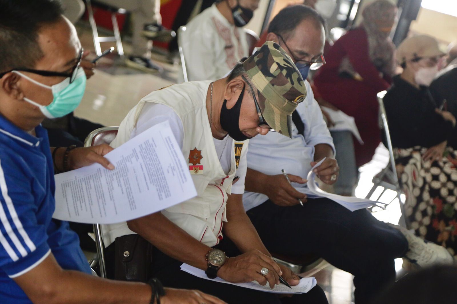 Asisten Perekonomian dan Pembangunan Setko Administrasi Jakarta Pusat Bakwan Ferizan Ginting memimpin sosialisasi rencana pembangunan trotoar dan bangunan pelengkap di Jakarta Pusat Tahun Anggaran 2022, berlangsung di Aula Kantor Kelurahan Pegangsaan, Kecamatan Menteng, Jumat (18/3).