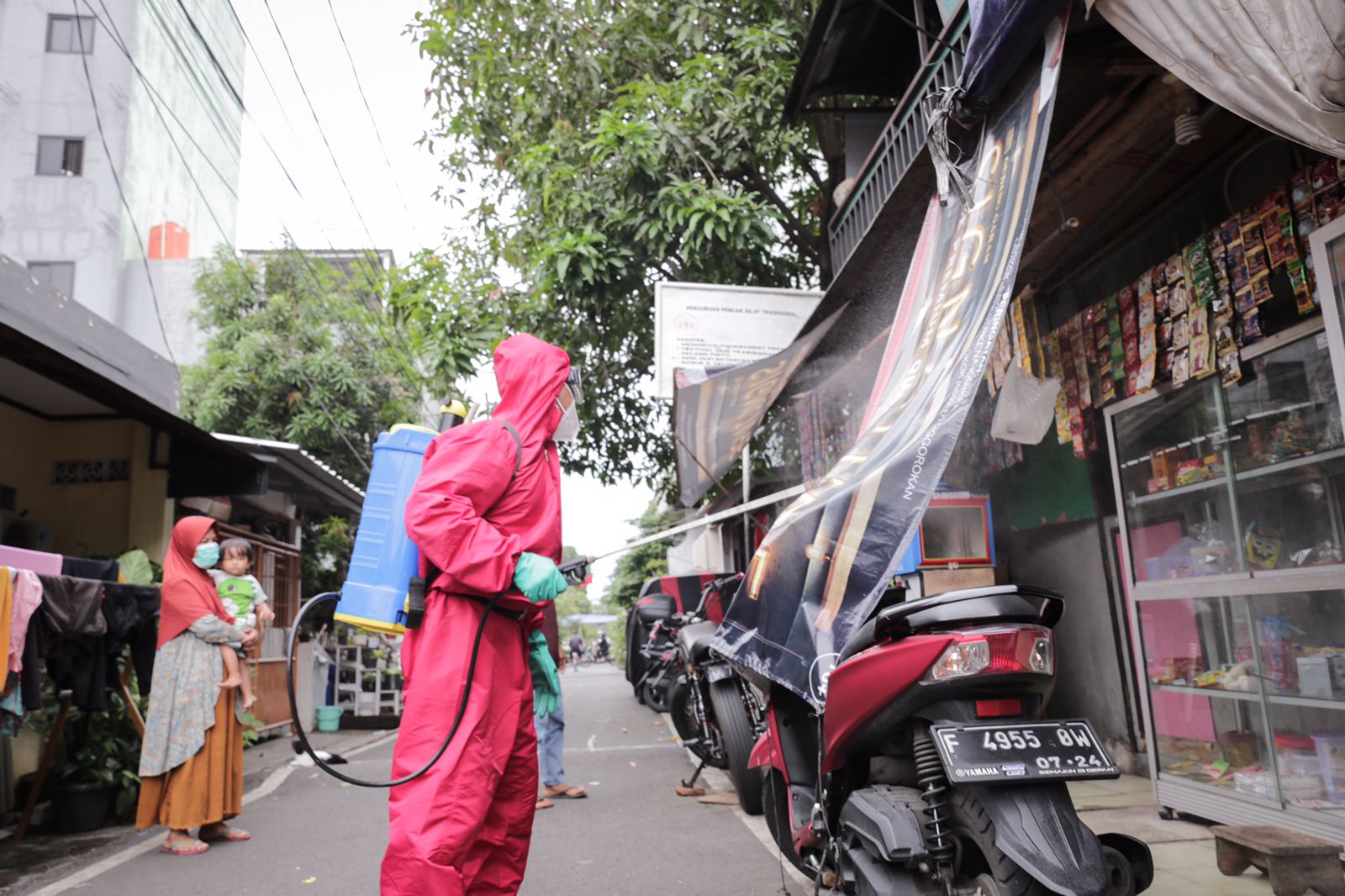Sudin Gulkarmat Jakarta Pusat melakukan penyemprotan Desinfektan di wilayah RW 04 Kelurahan Petojo Selatan