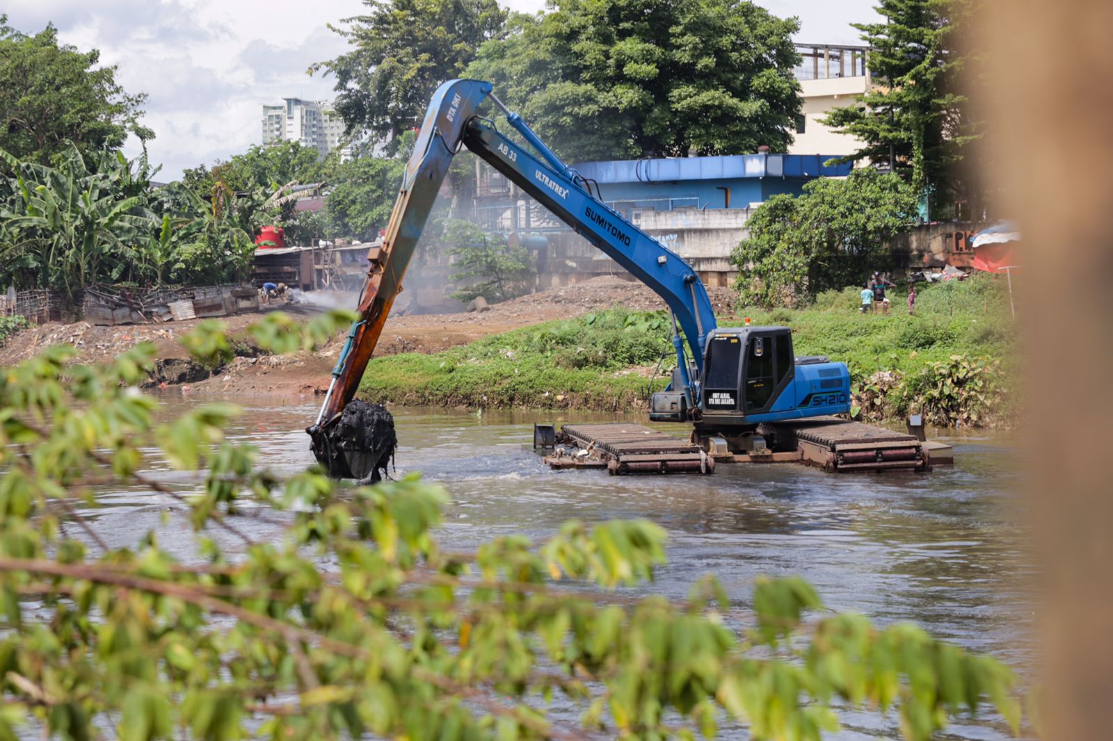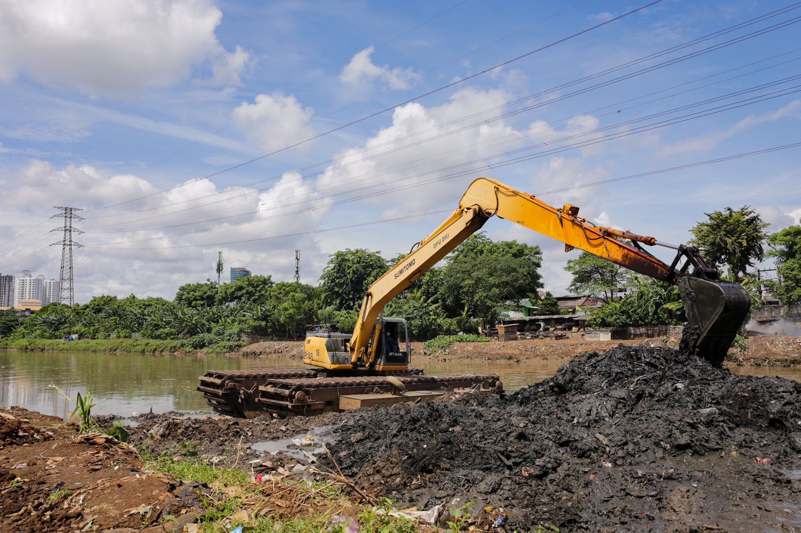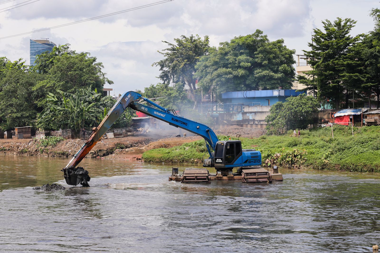 Sudin SDA melakukan pengerukan Kali Ciliwung Banjir Kanal Barat (BKB)