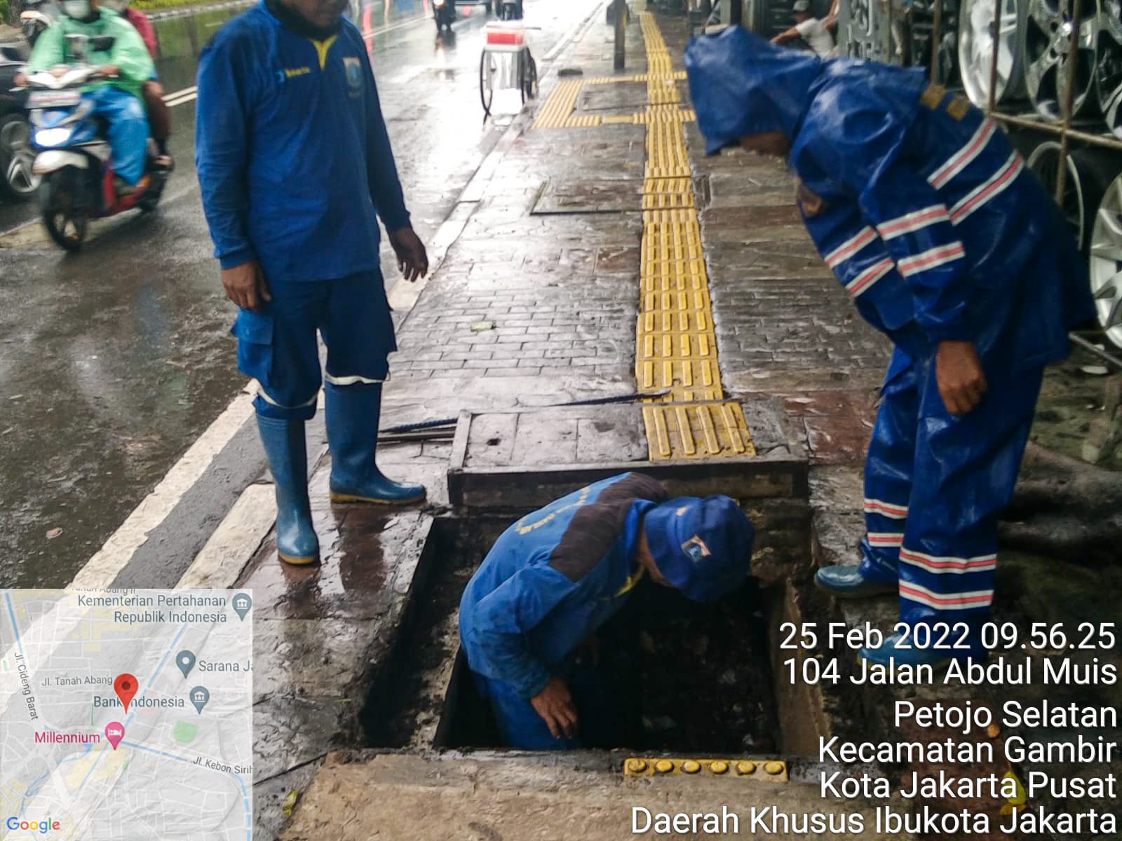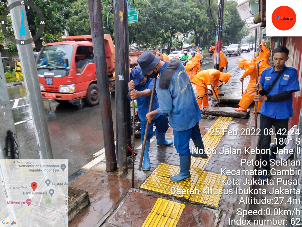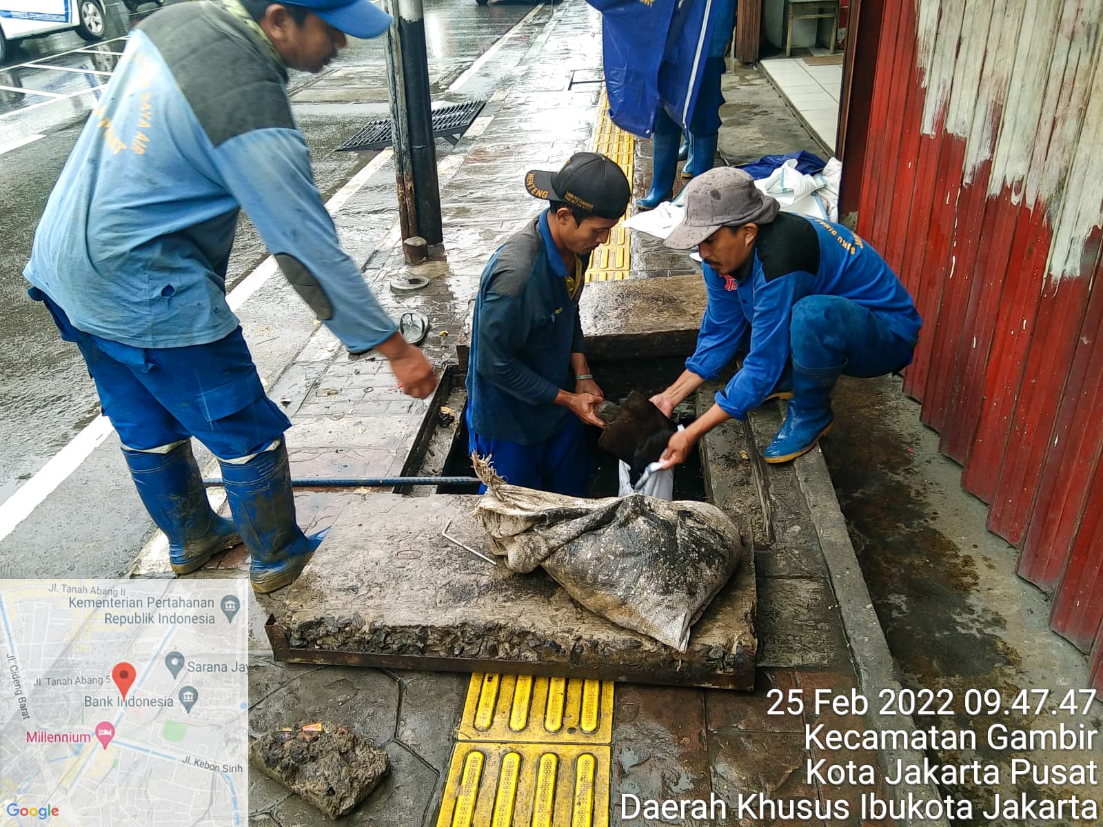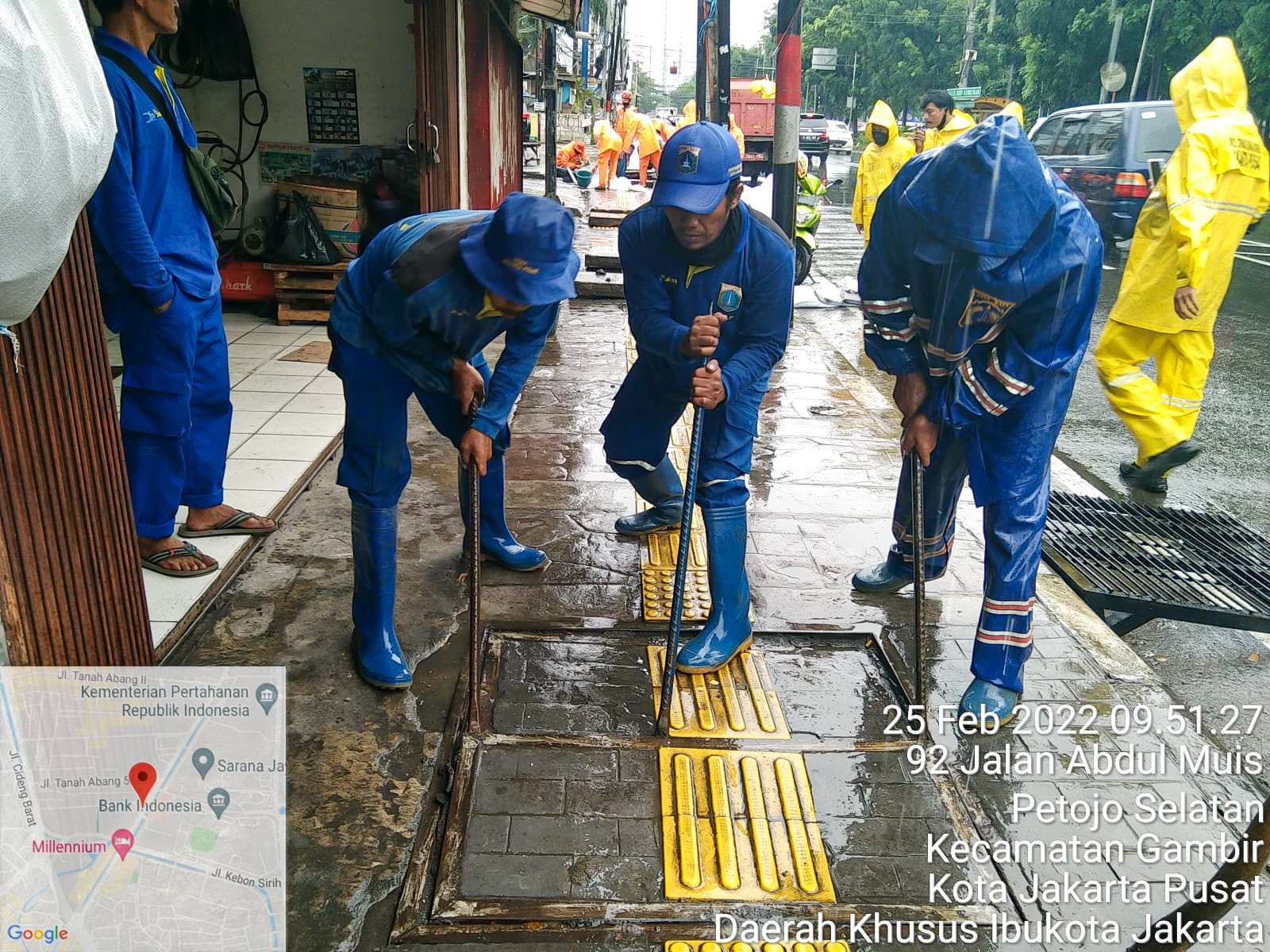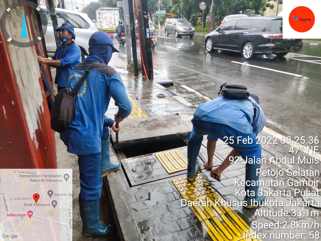 Sudin SDA, Sudin Bina Marga, dan PPSU membersihkan saluran air di sekitar Jalan Abdul Muis
