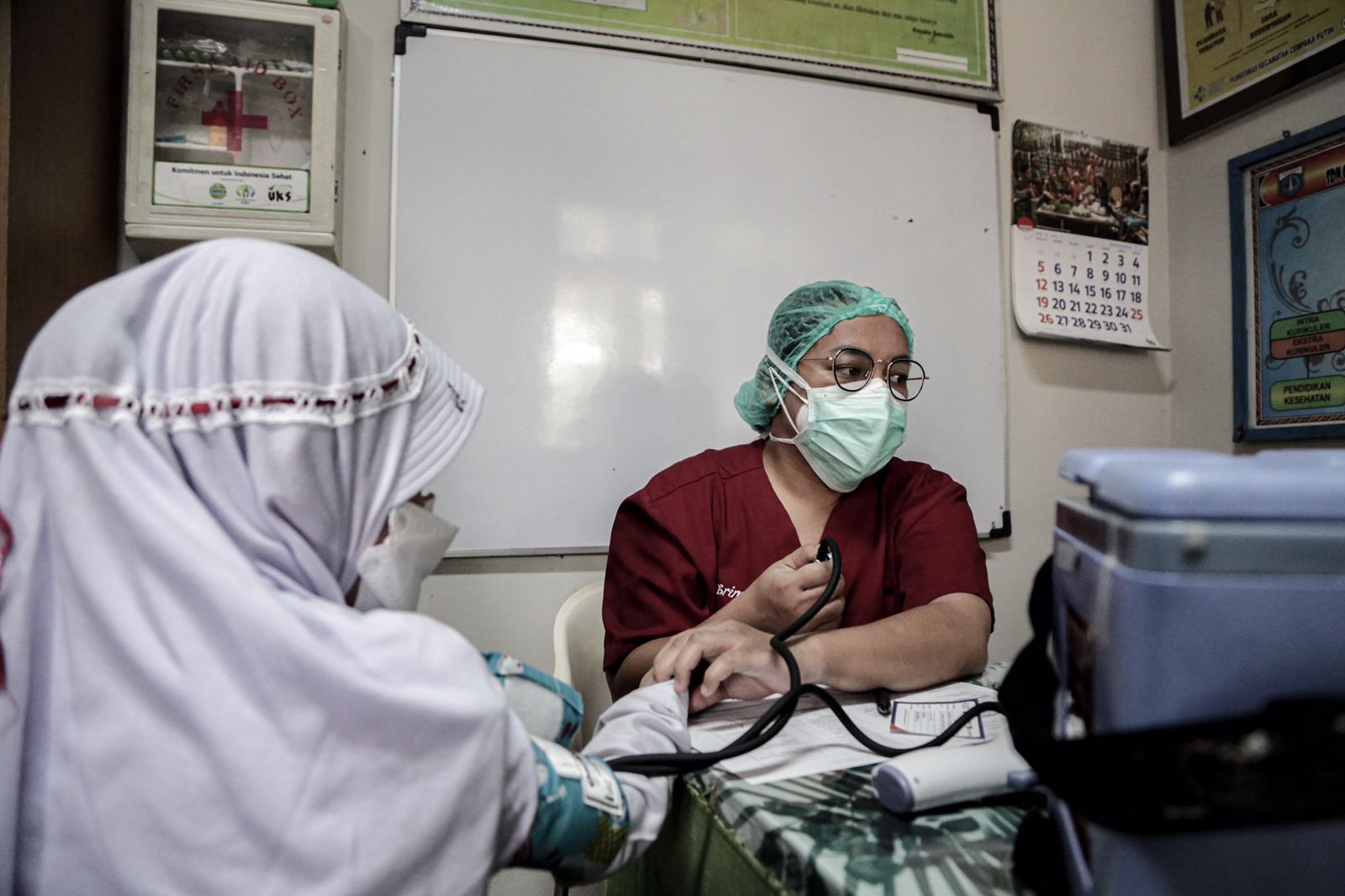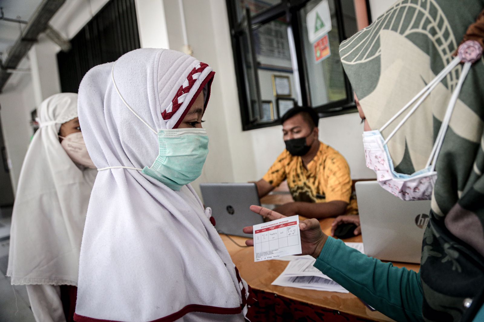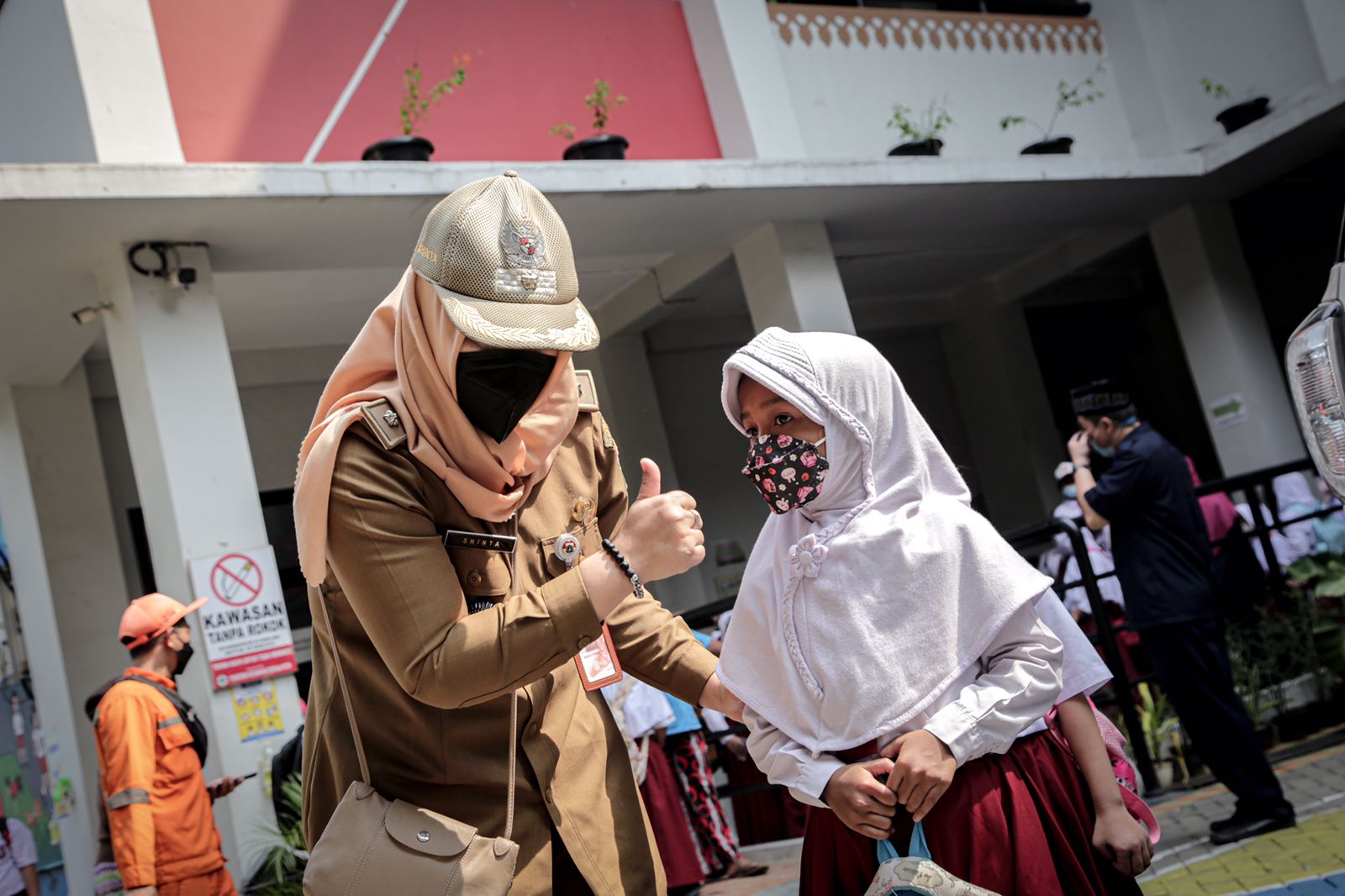 Lurah Cempaka Putih Timur, Shinta Purnamasari melakukan sweeping vaksinasi anak ke sekolah-sekolah yang ada di Cempaka Putih Timur. Salah satunya SDN 03 Cempaka Putih Timur, Selasa (4/1).