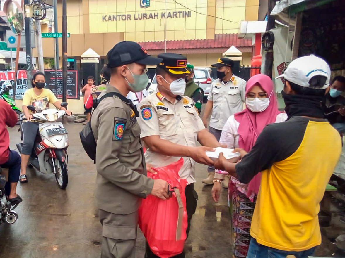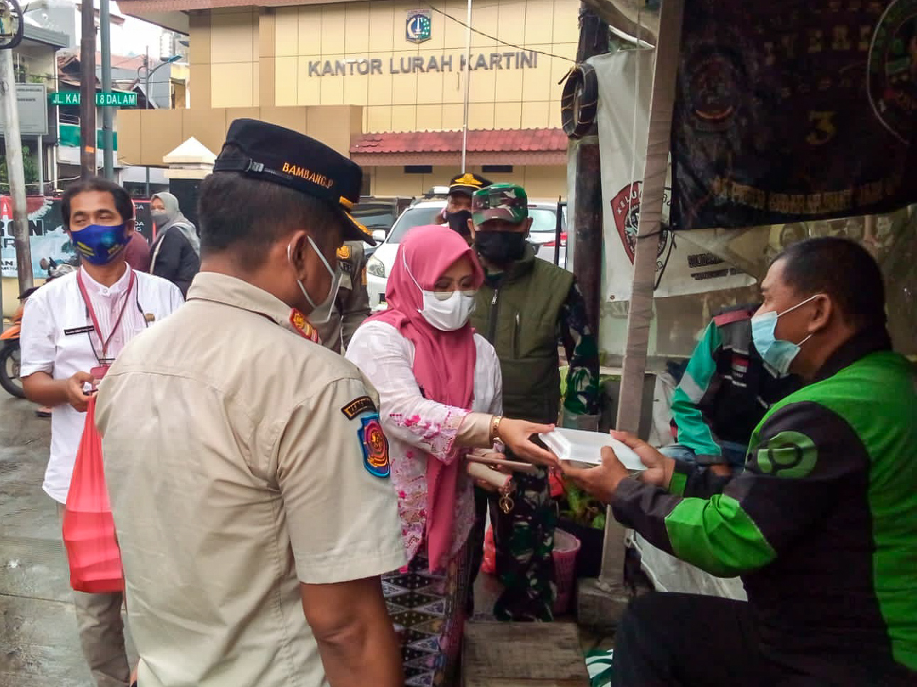 Tiga Pilar Kelurahan Kartini bersama Kodim 0501/JP BS menggelar jumat berkah dengan menyalurkan 50 kotak makanan siap saji kepada warga di lingkungan RW 08, Kelurahan Kartini, Jakarta Pusat, Jumat (18/2).