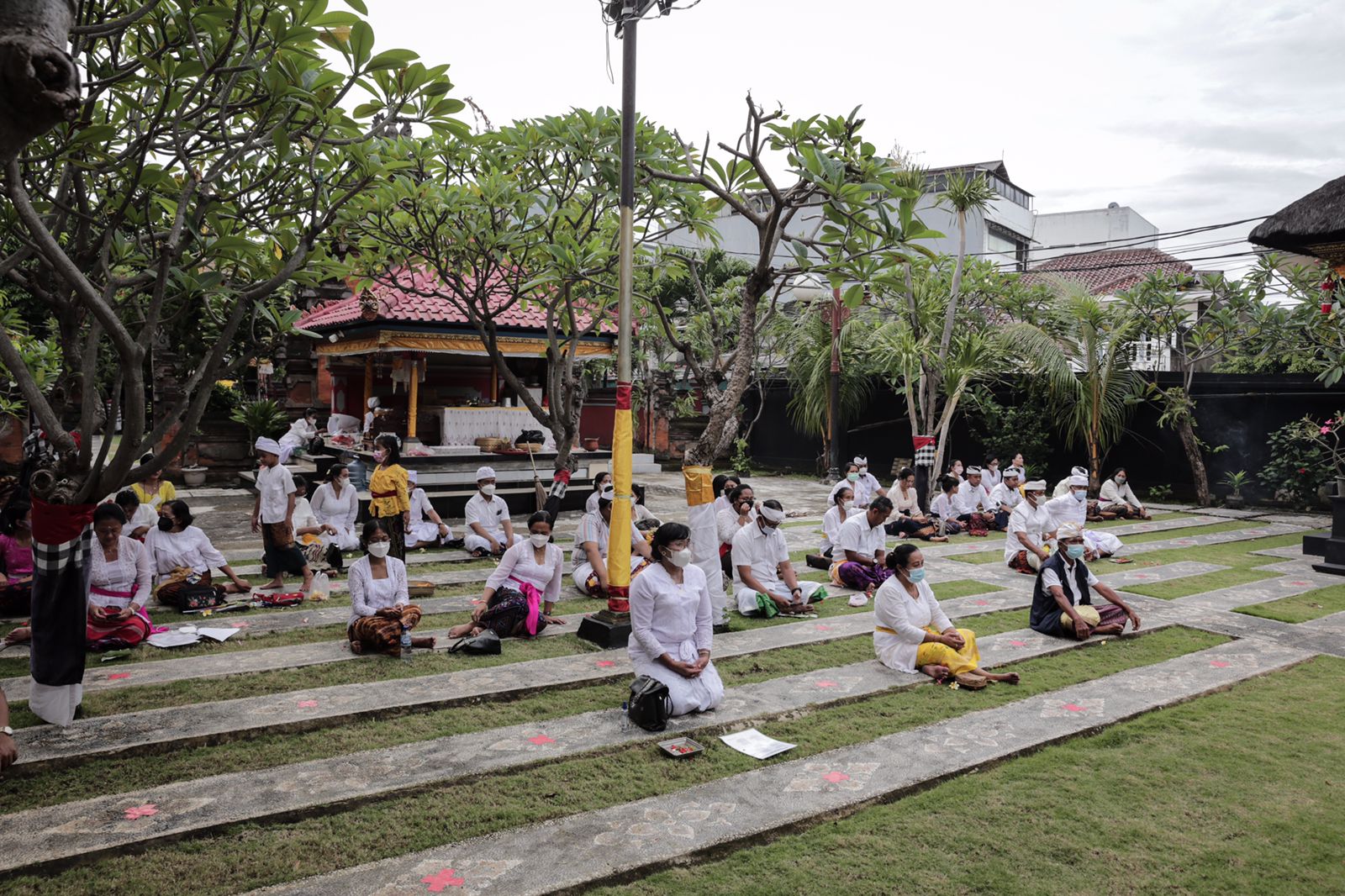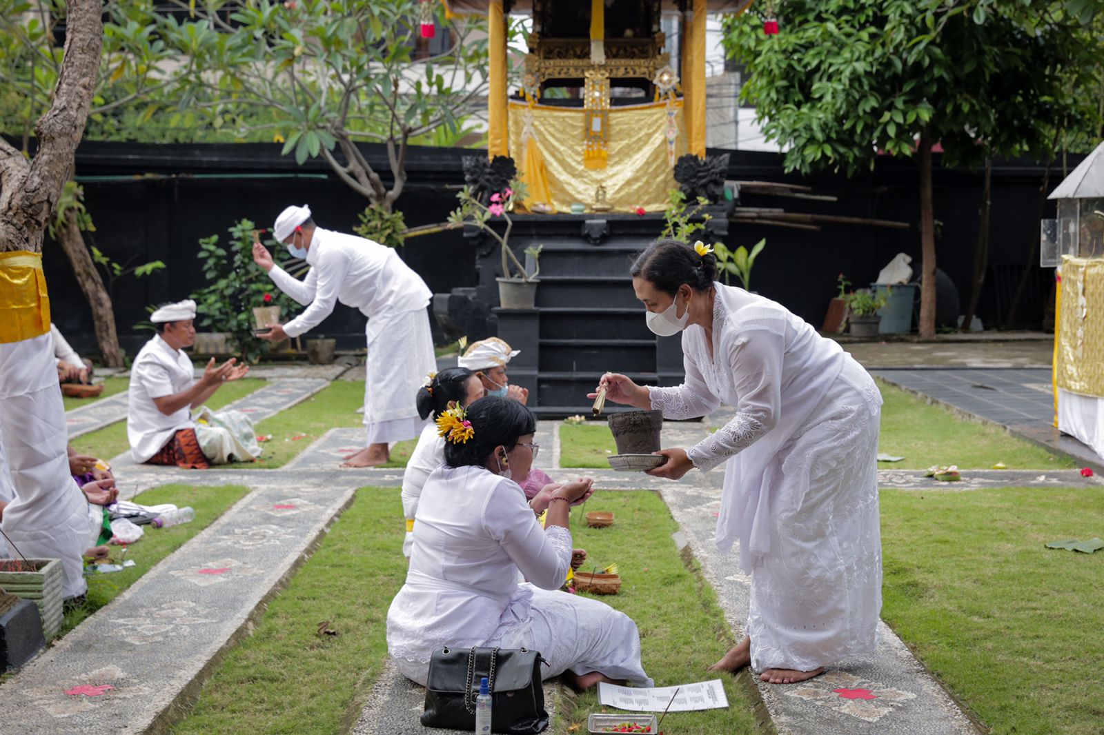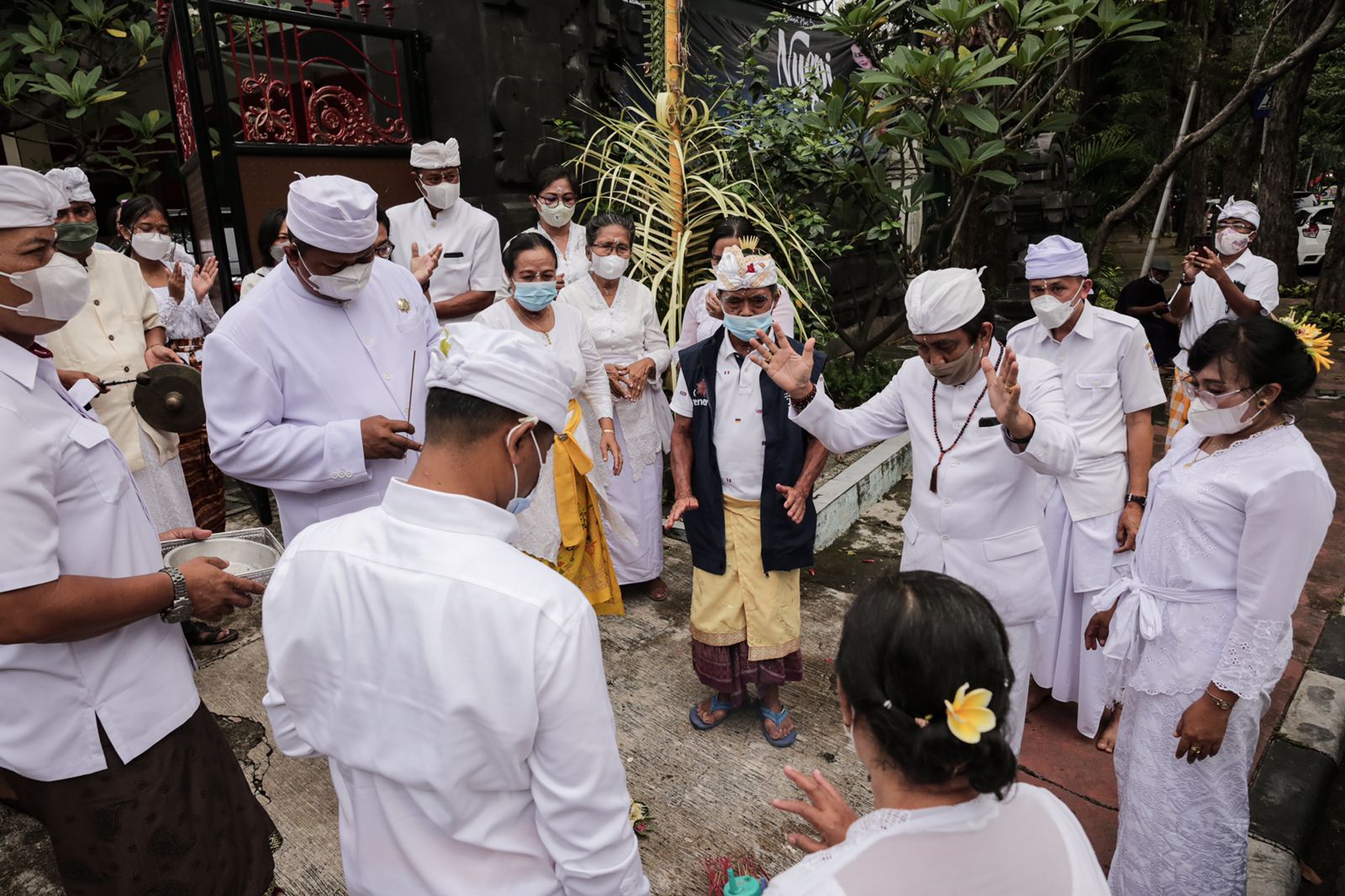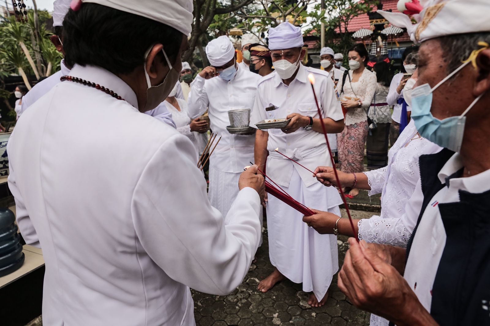 Menjelang hari raya Nyepi tahun Saka 1944, umat Hindu di Jakarta Pusat menggelar upacara keagamaan Tawur Agung Kesanga di Pura Agung Wira Satya Bhuana pada Rabu (2/3/2022).