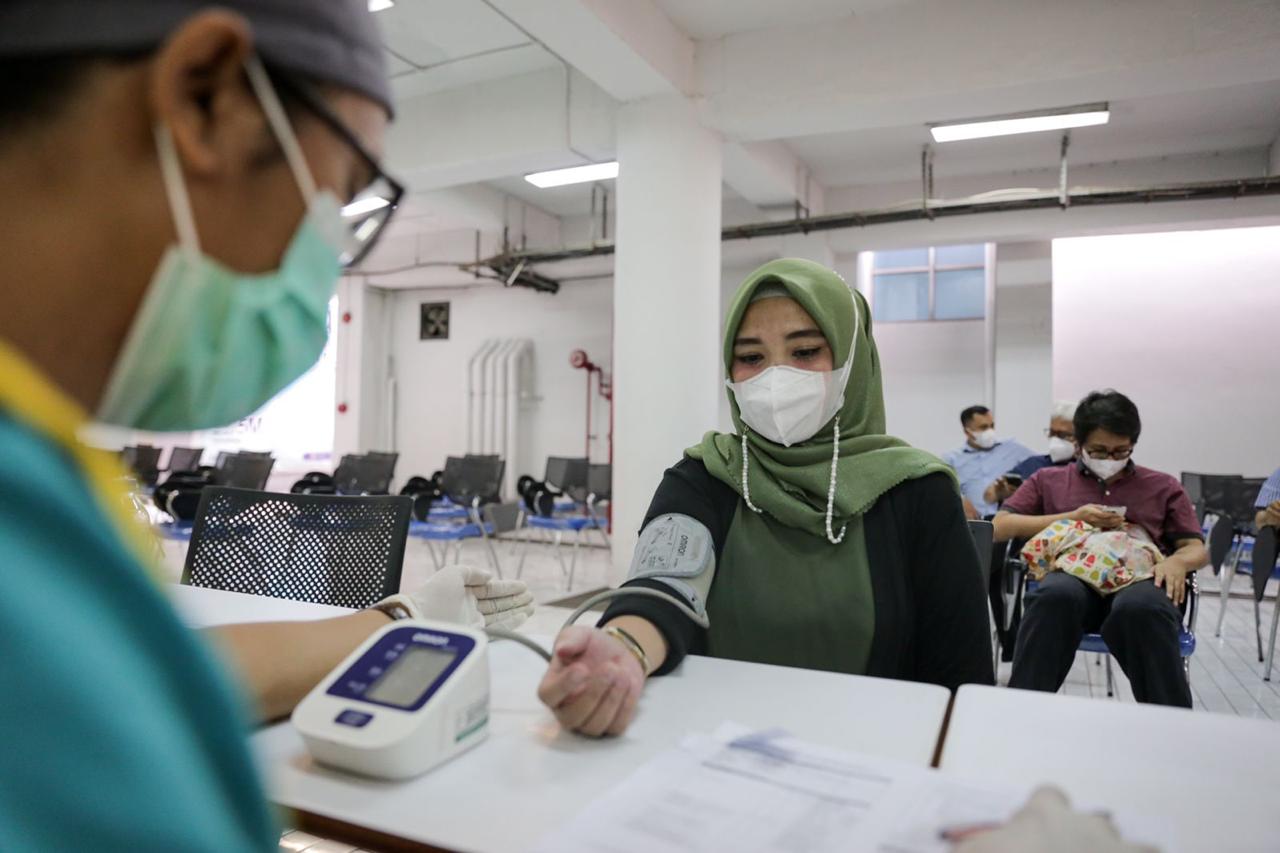 Puskesmas Kecamatan Senen berkolaborasi dengan Universitas BSI menggelar Vaksinasi ketiga atau Booster di Kampus Universitas Bina Sarana Informatika, Kelurahan Kwitang, Kamis (20/1).