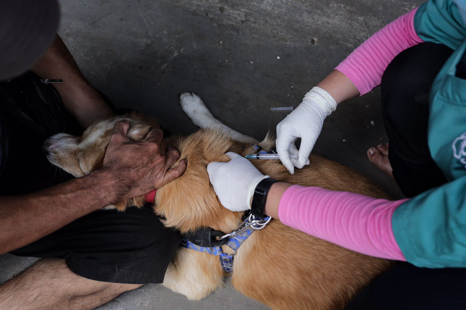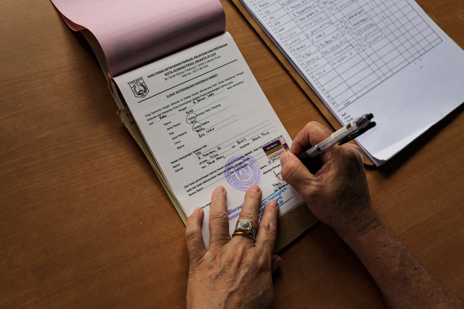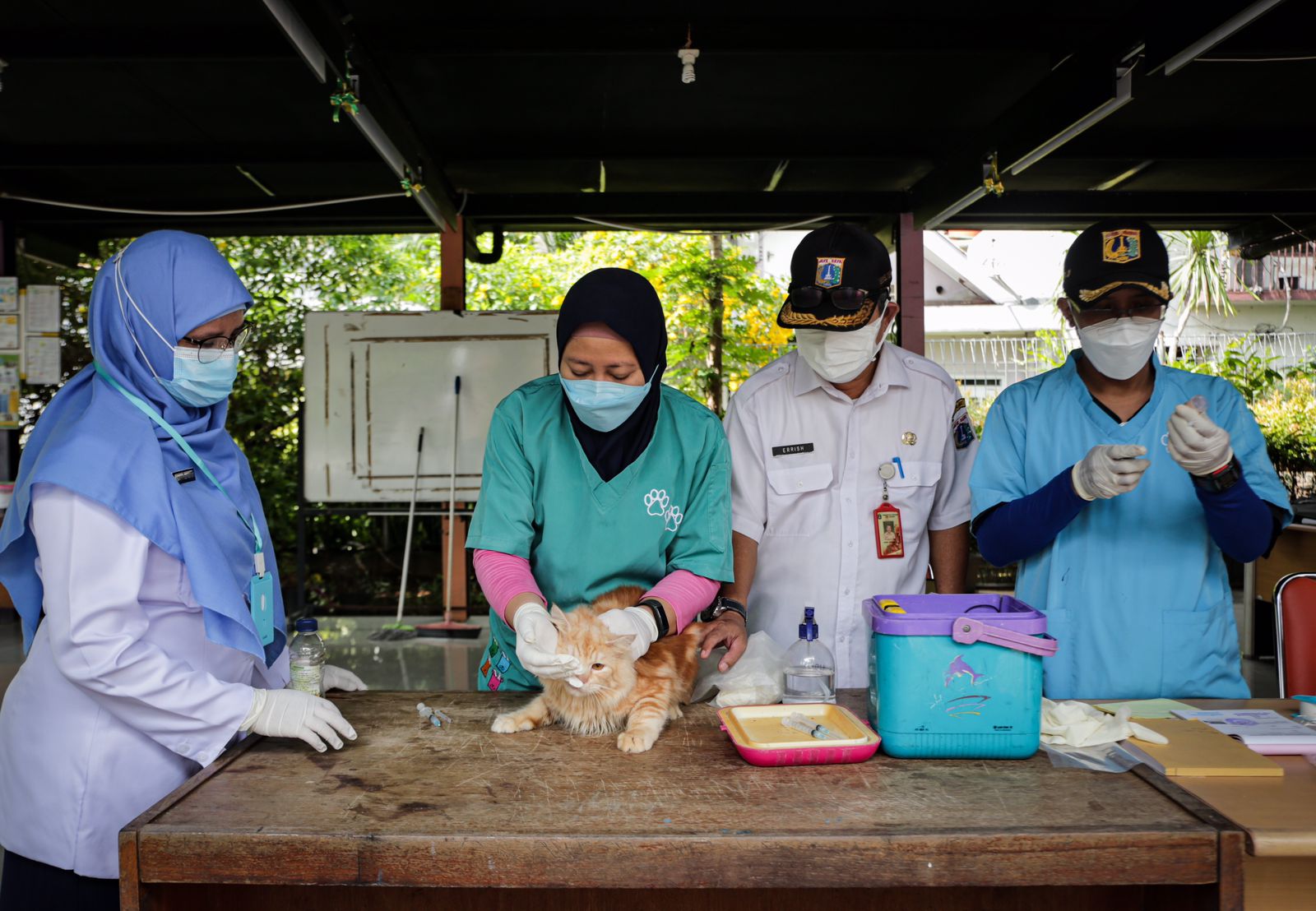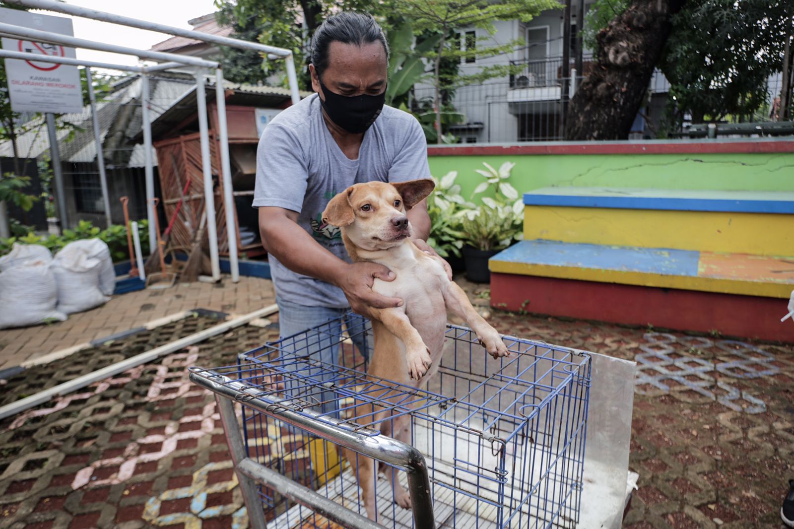 Suku Dinas Ketahan Pangan Kelautan dan Pertanian (KPKP) Jakarta Pusat, dibawah Seksi peternakan dan kesehatan hewan menggelar pengendalian penyakit rabies dengan memberikan pelayanan vaksinasi rabies gratis di RPTRA Melati 04, Kelurahan Bendungan Hilir, Rabu (19/1).