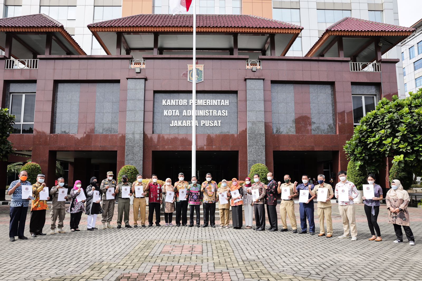 Sebanyak 22 orang Aparatur Sipil Negara (ASN) yang telah mencapai Batas Usia Pensiun (BUP) Terhitung Mulai Tanggal (TMT) 1 Maret 2022 dan keluarga almarhum/almarhumah menerima Surat Keputusan (SK) Pensiun, di Plaza Kantor Wali Kota Jakarta Pusat, Jalan Tanah Abang I, Gambir, Kamis (24/2).