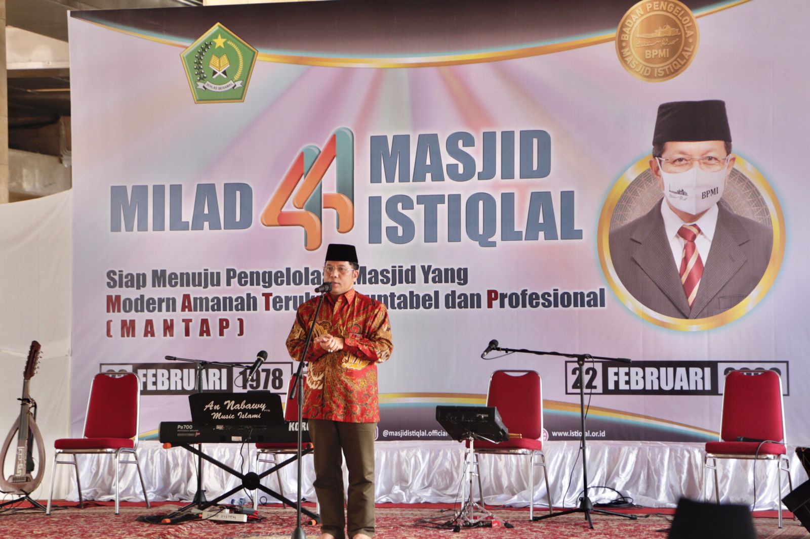 Wakil Wali Kota Administrasi Jakarta Pusat Irwandi menghadiri Milad ke-44 Masjid Istiqlal, di Jalan Taman Wijaya Kusuma, Kelurahan Pasar Baru, Kecamatan Sawah Besar, Selasa (22/2).
