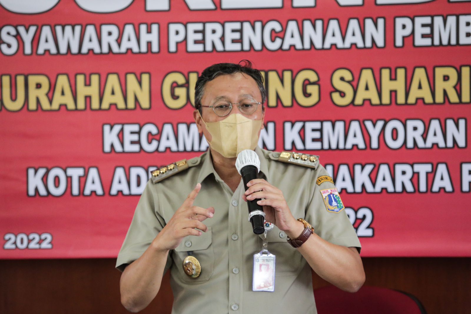 Wali Kota Jakarta Pusat, Dhany Sukma Membuka Musyawarah Rencana Pembangunan ( Musrenbang ) tingkat Kelurahan di Aula Kelurahan Gunung Sahari Selatan, Senin (31/1).