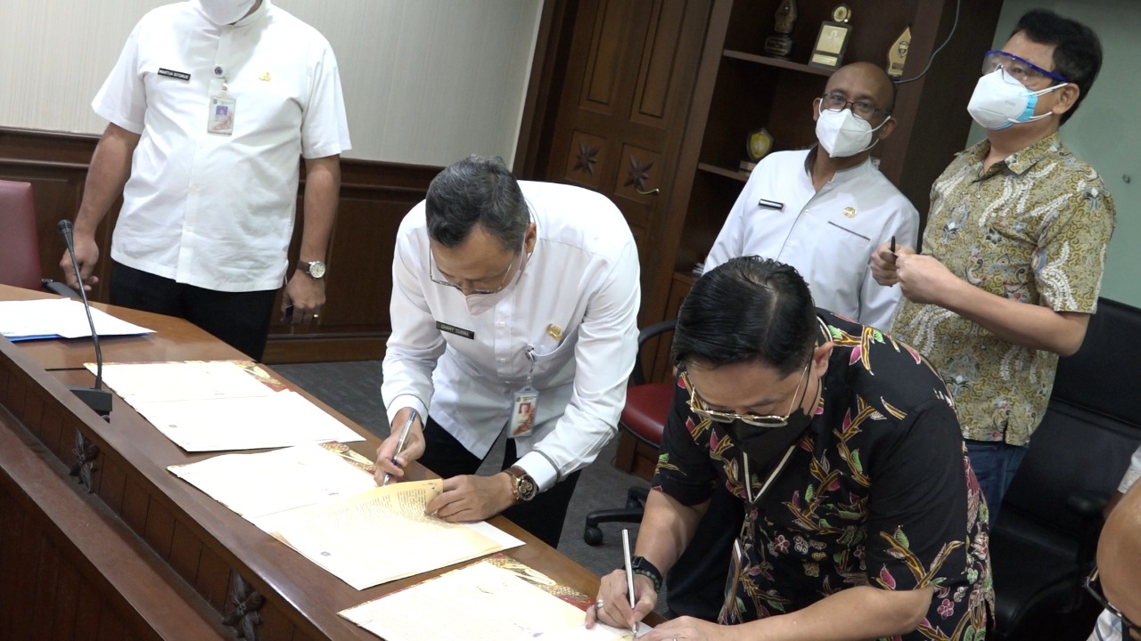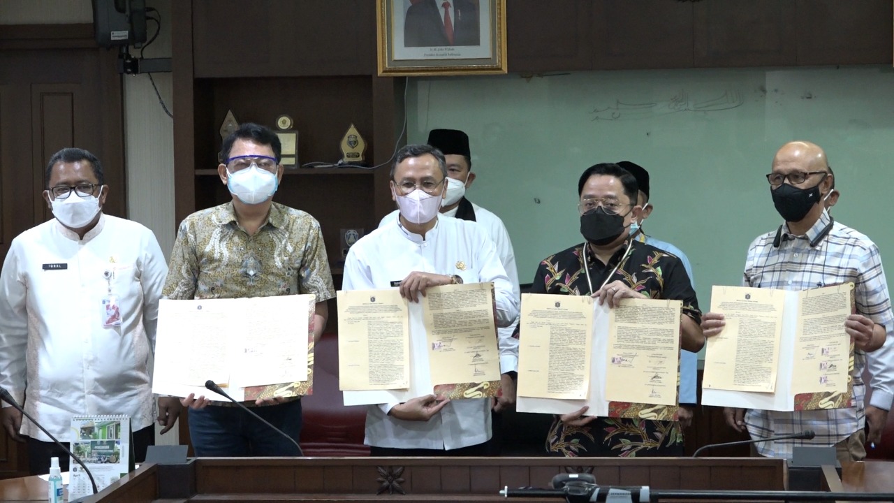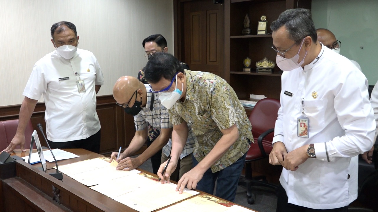 Wali Kota Administrasi Jakarta Pusat Dhany Sukma menandatangani Berita Acara Serah Terima (BAST) Pemenuhan Kewajiban Fasos-Fasum yang berlangsung di Ruang Rapat Walikota, Kantor Wali Kota Jakarta Pusat, Jalan Tanah Abang I, Gambir, Jumat (25/2). Fasos fasum yang diserahkan mencapai lebih dari Rp 50 miliar.