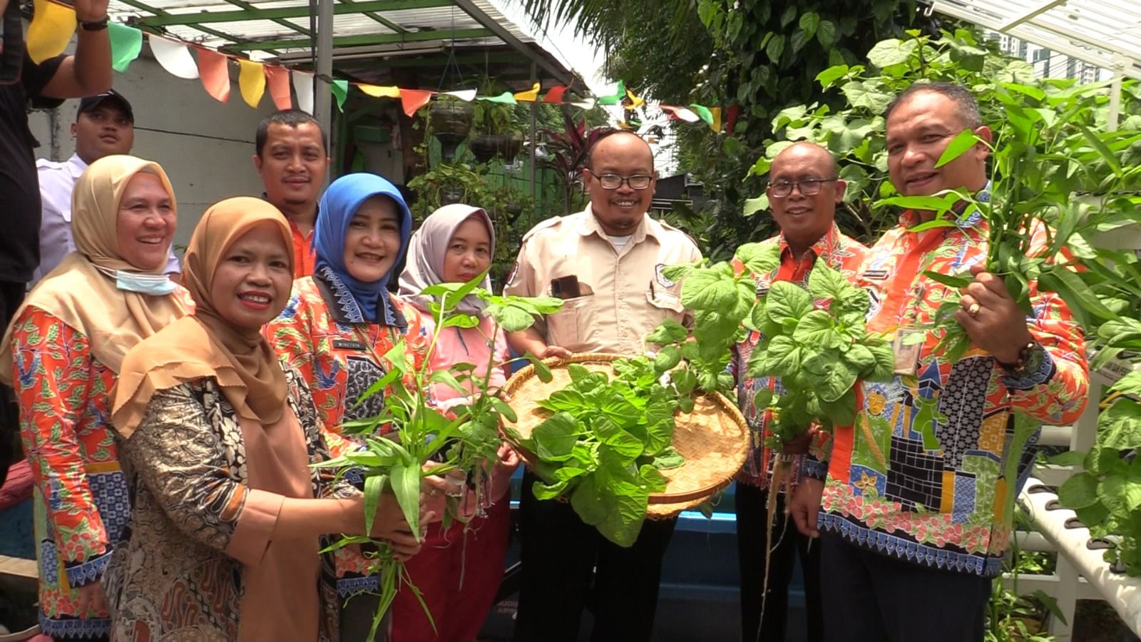 Asisten Perekonomian dan Pembangunan (Asekbang) Setko Administrasi Jakarta Pusat Bakwan Ferizan Ginting meninjau lokasi kampung proklim sekaligus melakukan panen ikan nila dan sayuran jenis bayam dan kangkung di wilayah RW 07, Kelurahan Paseban, Kecamatan Senen, Kamis (16/2).