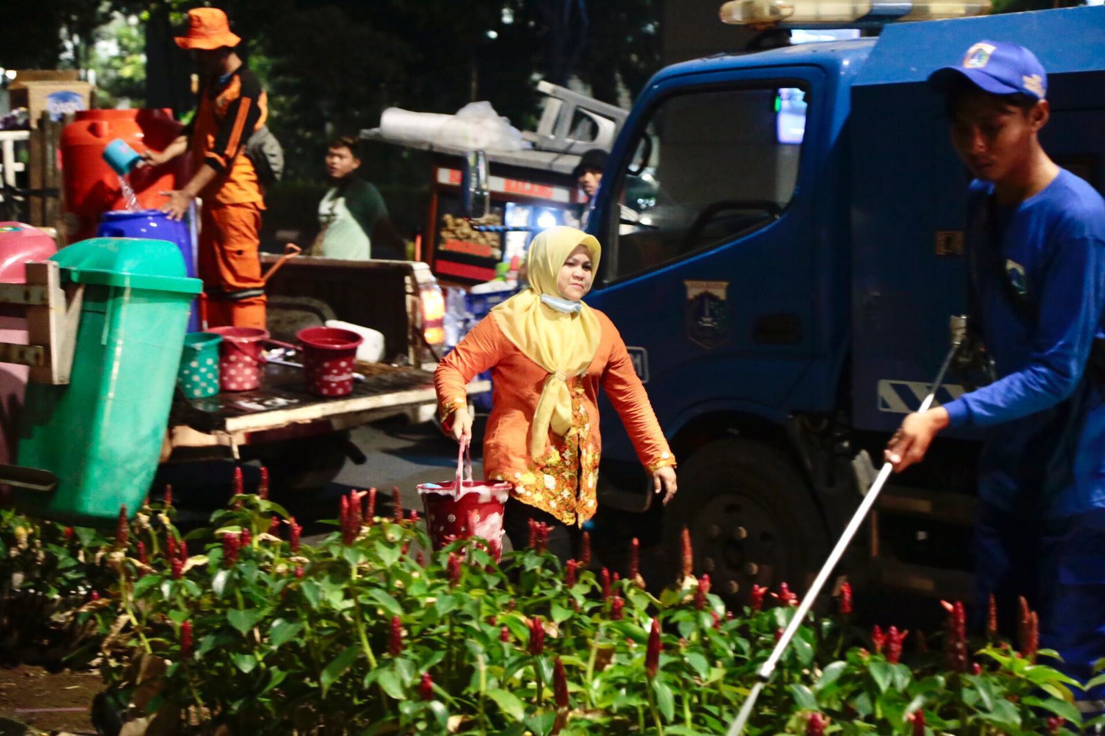Wakil Wali Kota Administrasi Jakarta Pusat Chaidir memimpin apel persiapan pembersihan pedestrian yang berlangsung di Pintu 1 Gelora Bung Karno (GBK), Kelurahan Gelora, Kecamatan Tanah Abang, Jakarta Pusat, Jumat (28/7) malam.