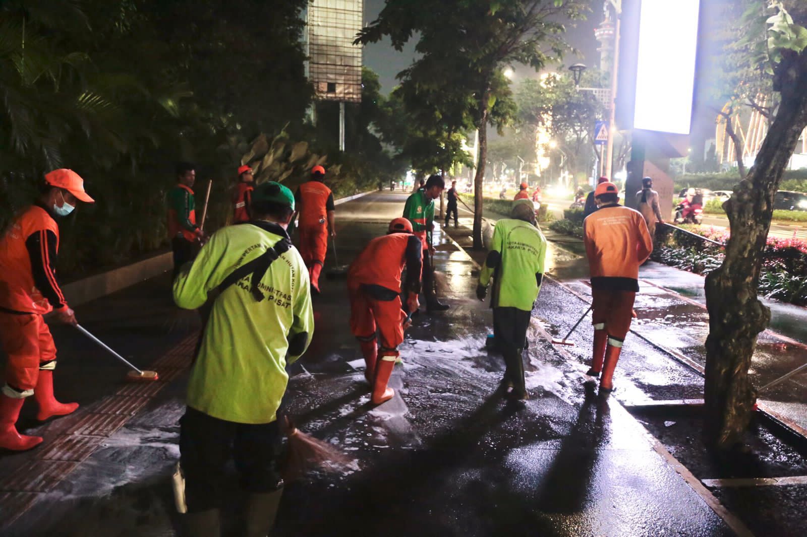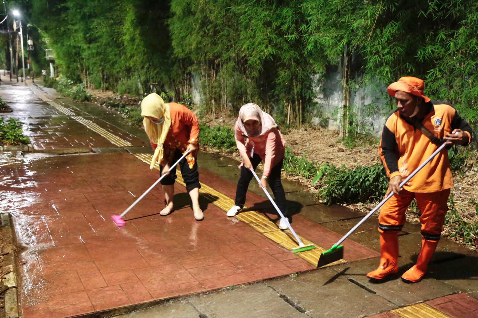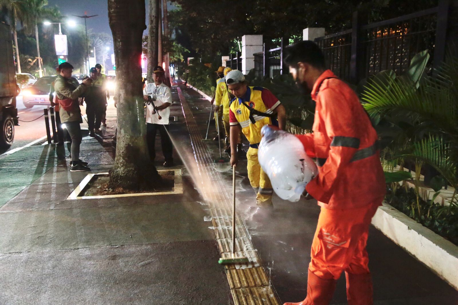 Bersih-bersih sarana dan prasarana umum di Pintu 1 Gelora Bung Karno