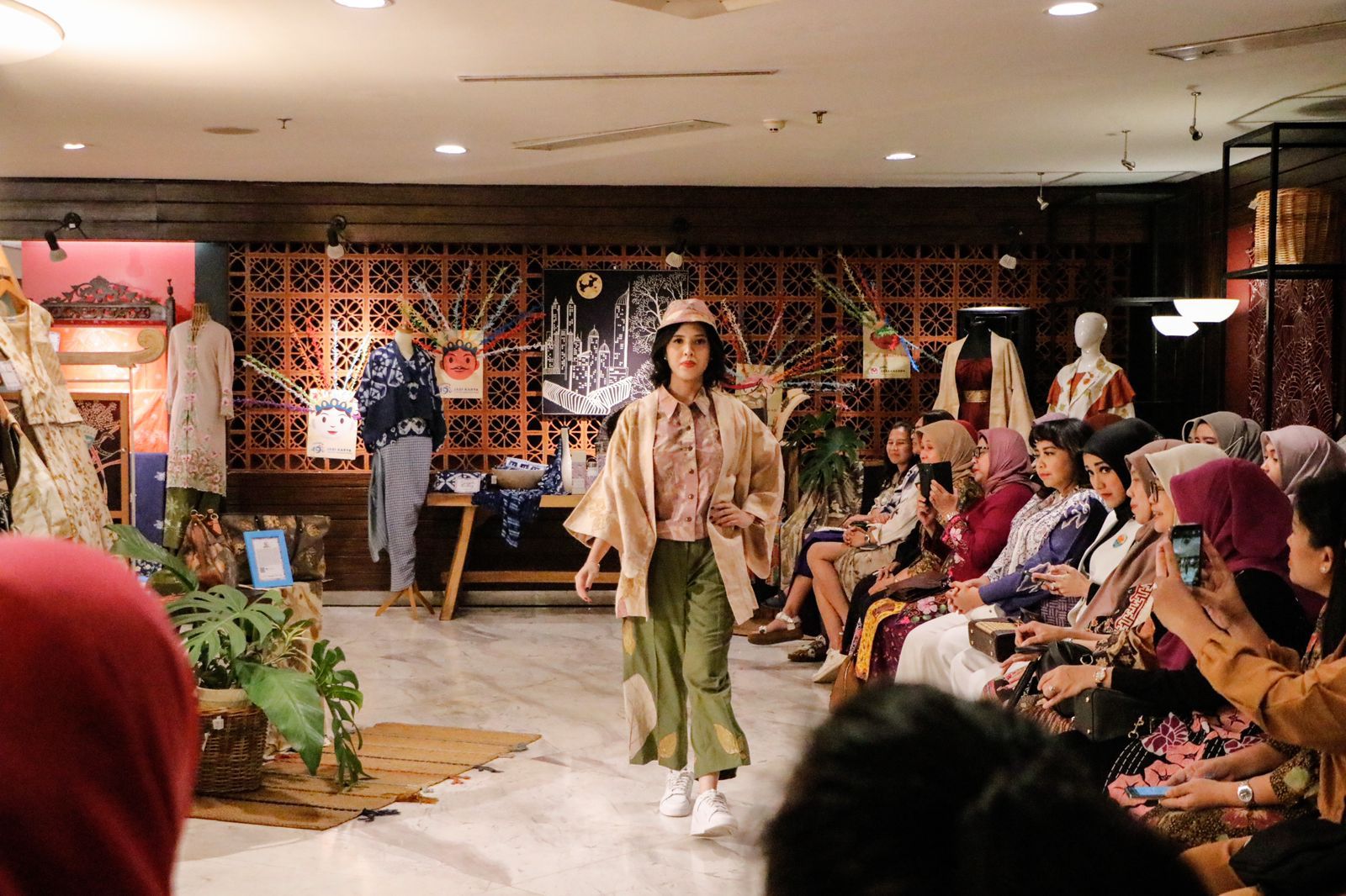 Pengrajin Batik Marunda bersama Dewan Kerajinan Nasional Daerah (Dekranasda) DKI Jakarta dan Universitas Bina Nusantara (BINUS) Jakarta gelar fashion show dan pameran karya di Alun-Alun Indonesia - Mall Grand Indonesia, Tanah Abang, Jakarta Pusat, Jumat (23/6).