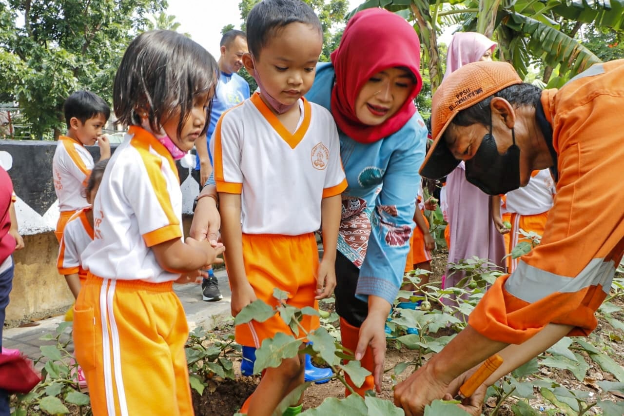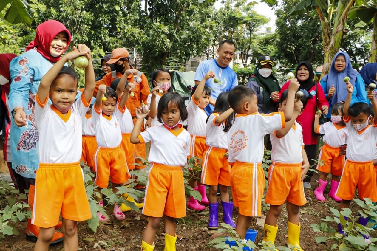 Edukasi siswa-siswi PAUD di lokasi penataan kawasan Cempaka Putih Timur.