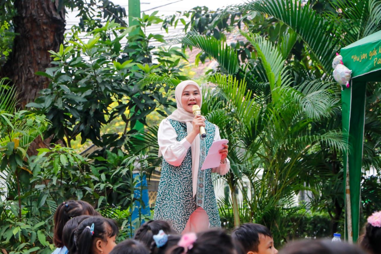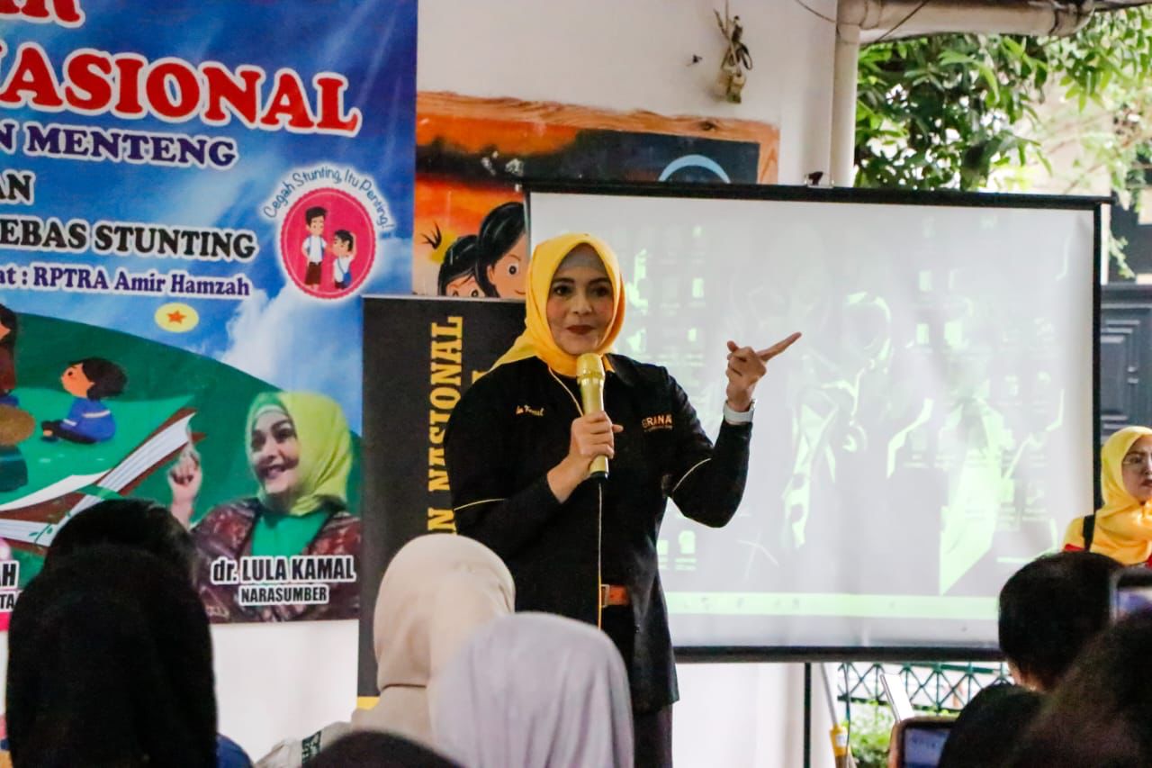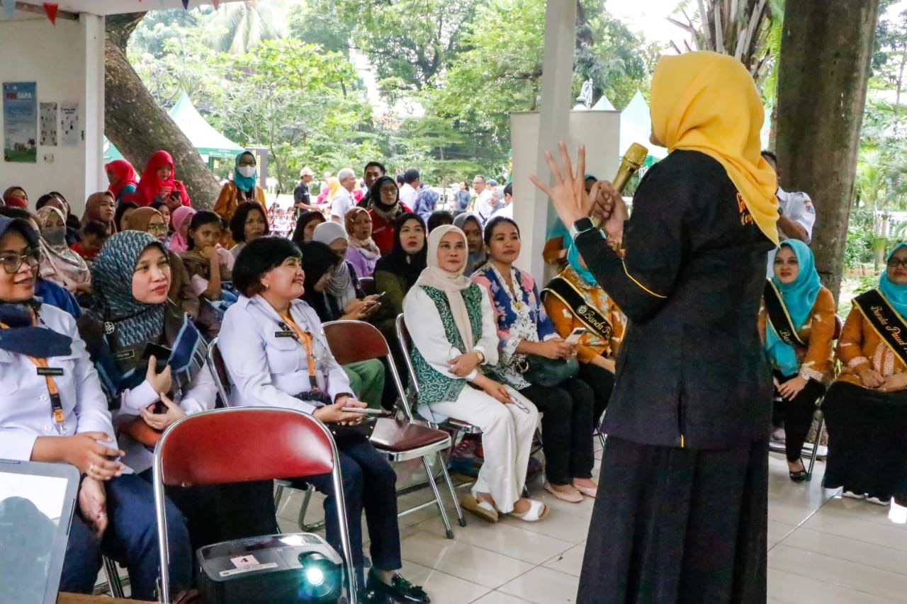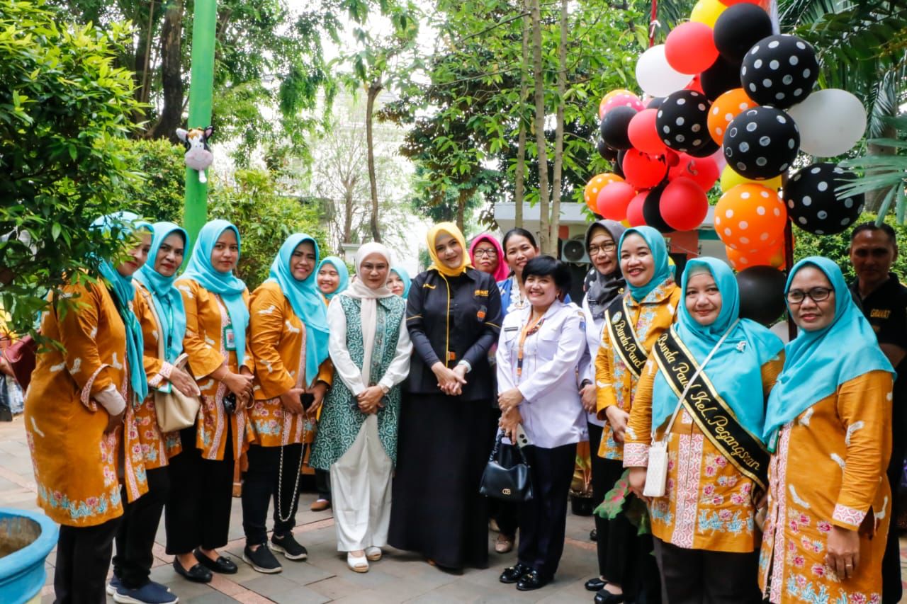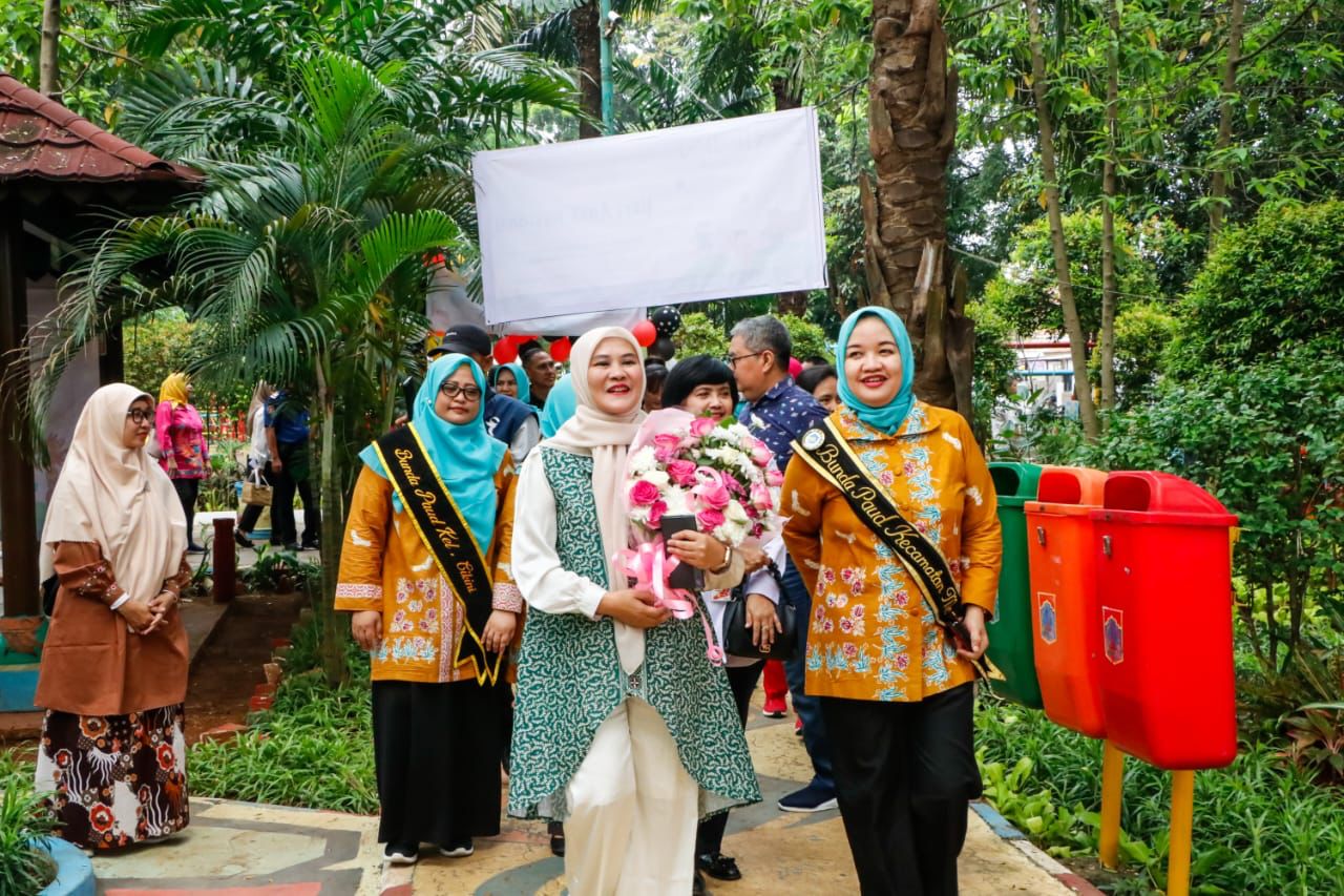 Ketua Tim Penggerak Pemberdayaan Kesejahteraan Keluarga (TP PKK) Kota Administrasi Jakarta Pusat Ucu Jamilah menghadiri Gebyar Hari Anak Nasional di RPTRA Amir Hamzah, Kelurahan Pegangsaan, Kecamatan Menteng, Rabu (26/7).