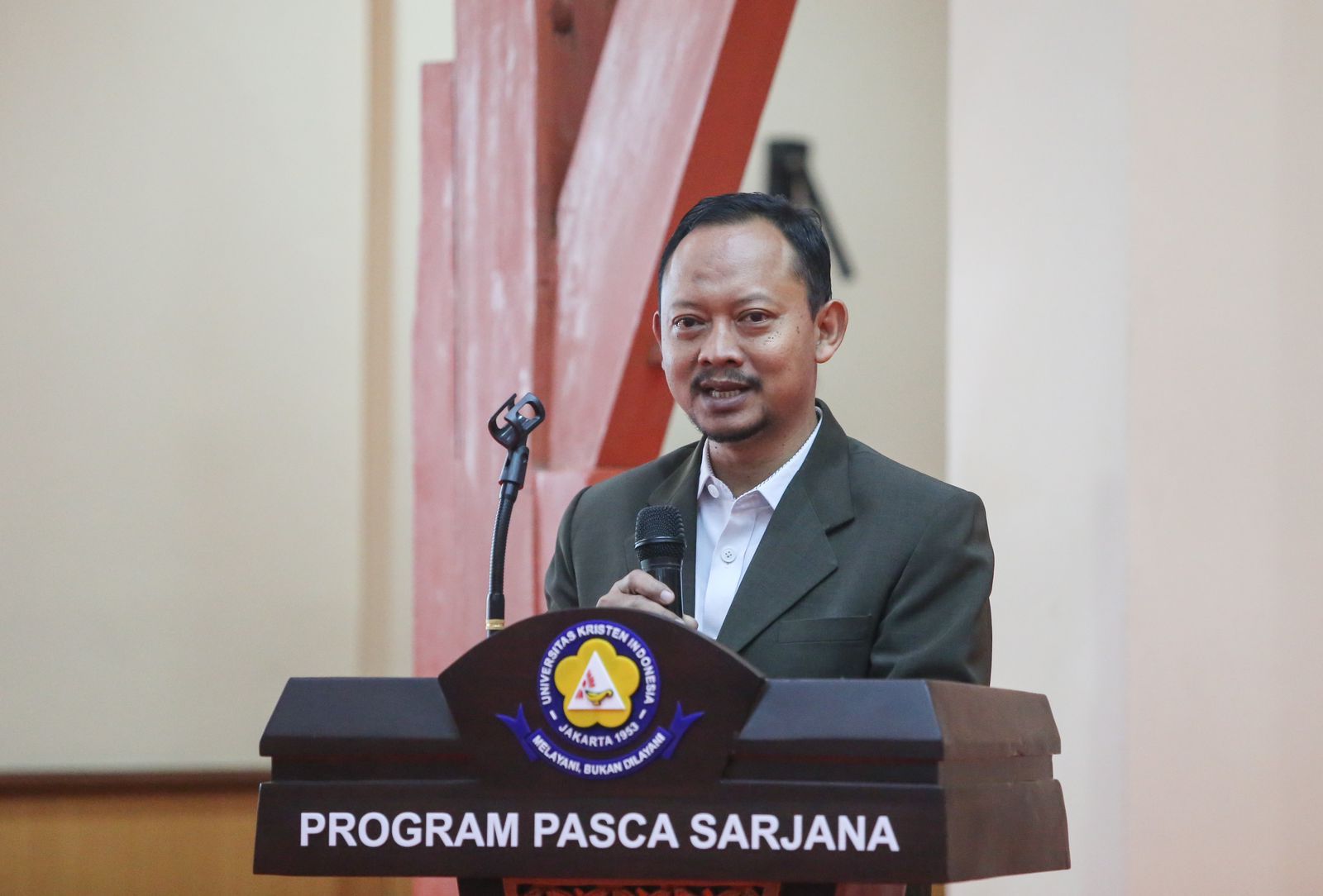 Kepala Bagian Kesejahteraan Rakyat (Kabag Kesra) Kota Administrasi Jakarta Pusat Ahmad juhandi menghadiri halalbihalal, di Kampus Universitas Kristen Indonesia (UKI) Salemba, Kecamatan Menteng, Rabu (3/5).