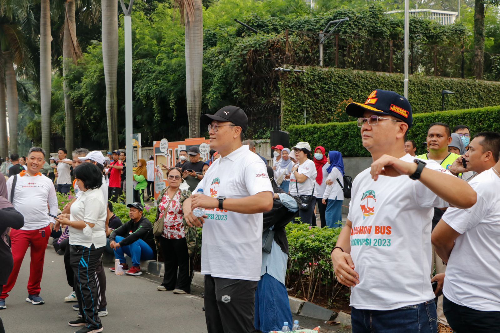 Wali Kota Administrasi Jakarta Pusat Dhany Sukma mendampingi Sekretaris Daerah (Sekda) DKI Jakarta Joko Agus Setyono dalam menghadiri acara Jelajah Negeri Bangun Antikorupsi dan Roadshow Bus Antikorupsi 2023, di kawasan Bundaran Hotel Indonesia (HI), Minggu (7/5)