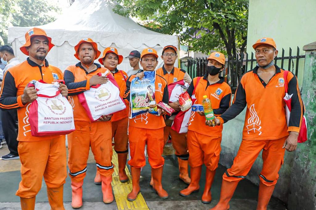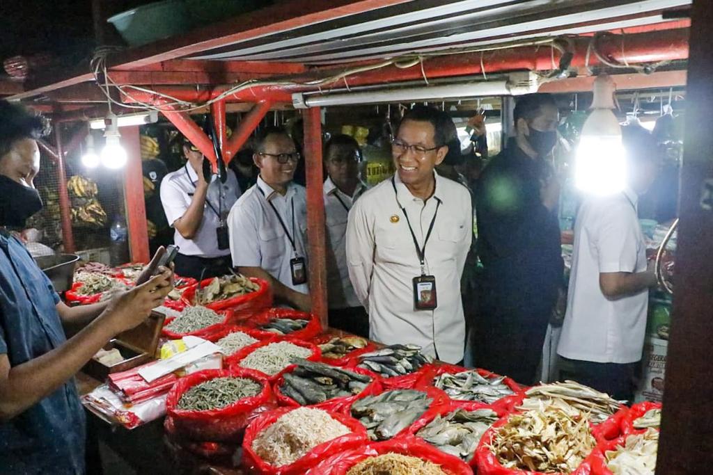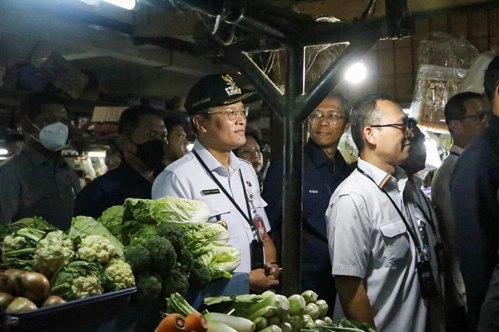 Wali Kota Administrasi Jakarta Pusat Dhany sukma mendampingi Presiden Republik Indonesia Joko Widodo dan Menteri Perdagangan Zulkifli Hasan serta Pj Gubernur DKI Jakarta Heru Budi Hartono mengecek secara langsung harga kebutuhan pokok menjelang Hari Raya Idulfitri di Pasar Johar Baru, Jakarta Pusat, Rabu (5/4).