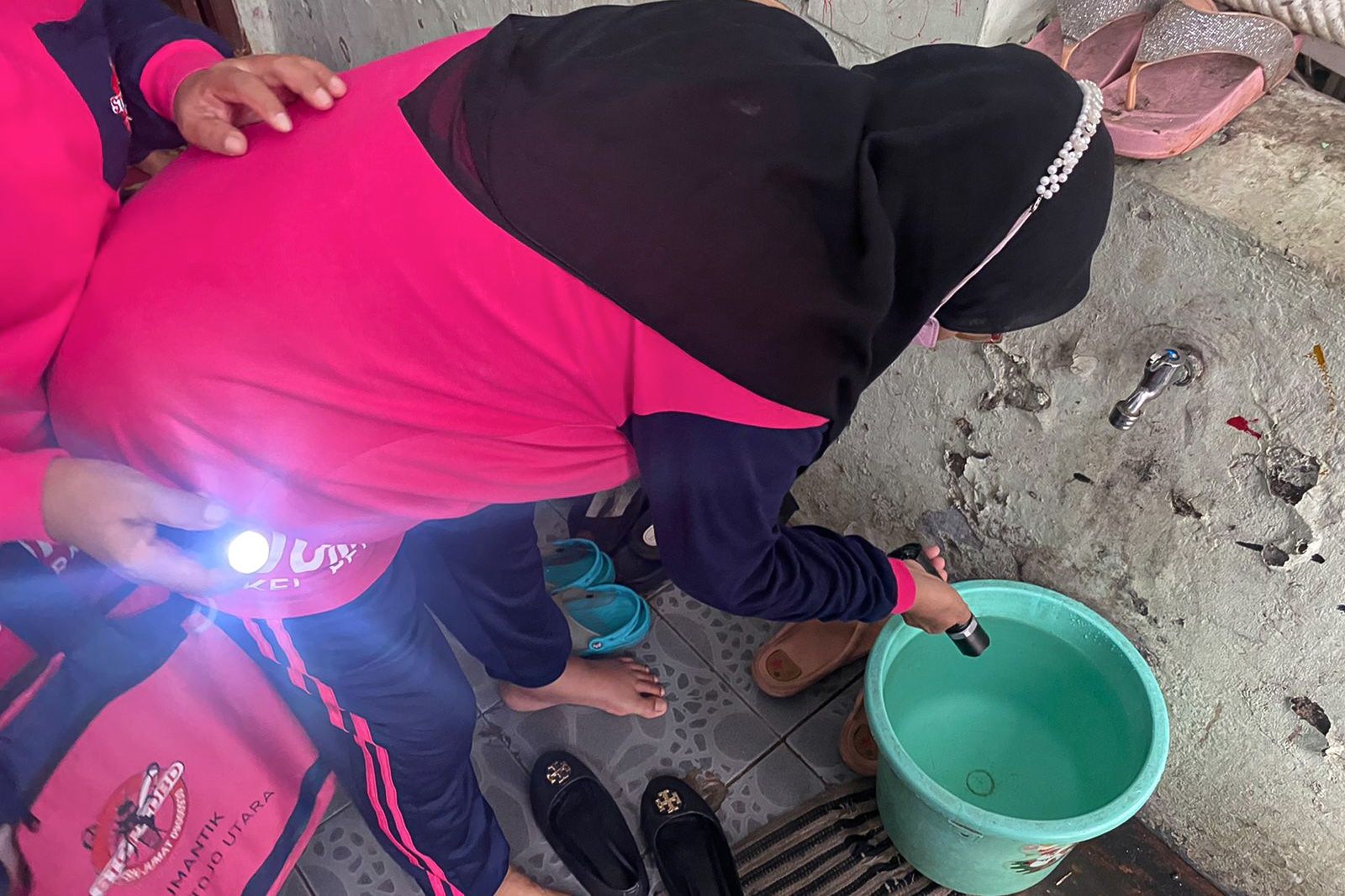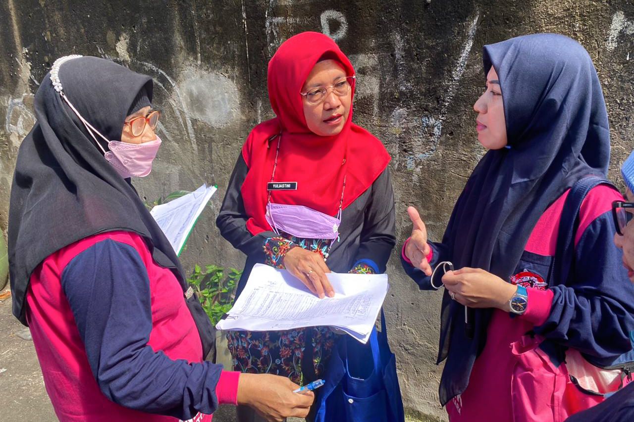 Camat Gambir Andri Ferdian bersilaturahmi dengan para kader juru pemantau jentik (Jumantik) di Pos RW 01, Kelurahan Petojo Utara, Jakarta Pusat, Jumat (3/3).