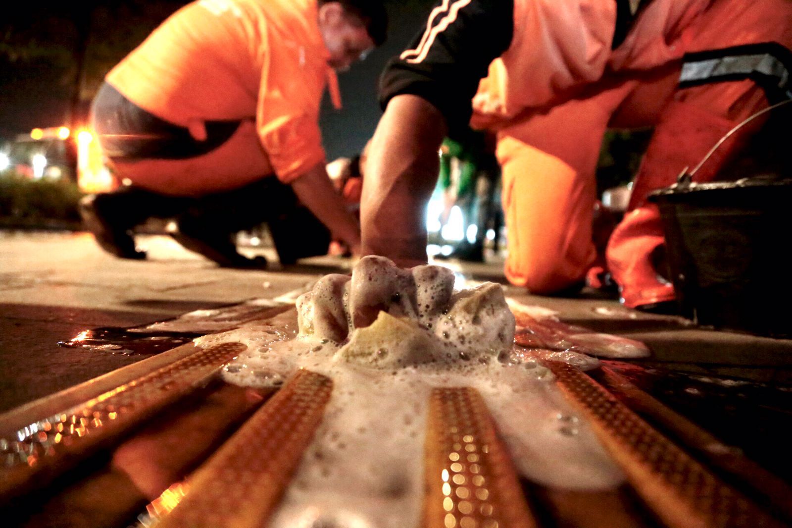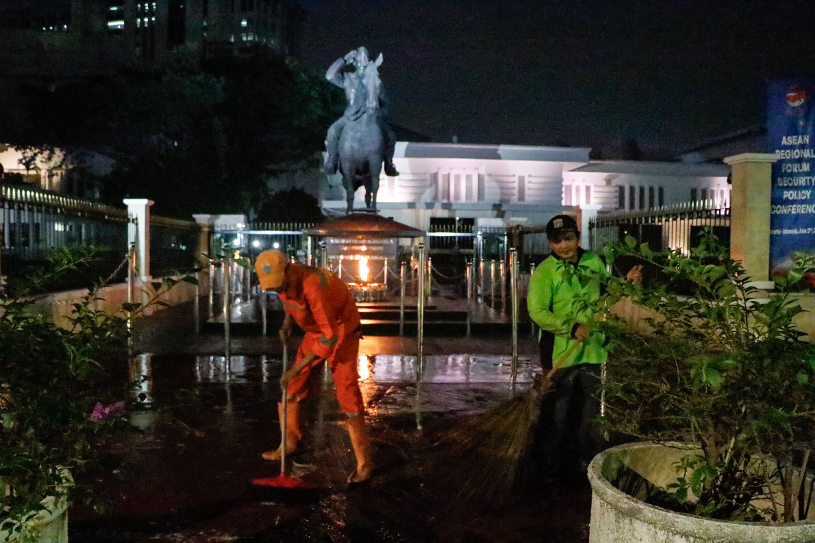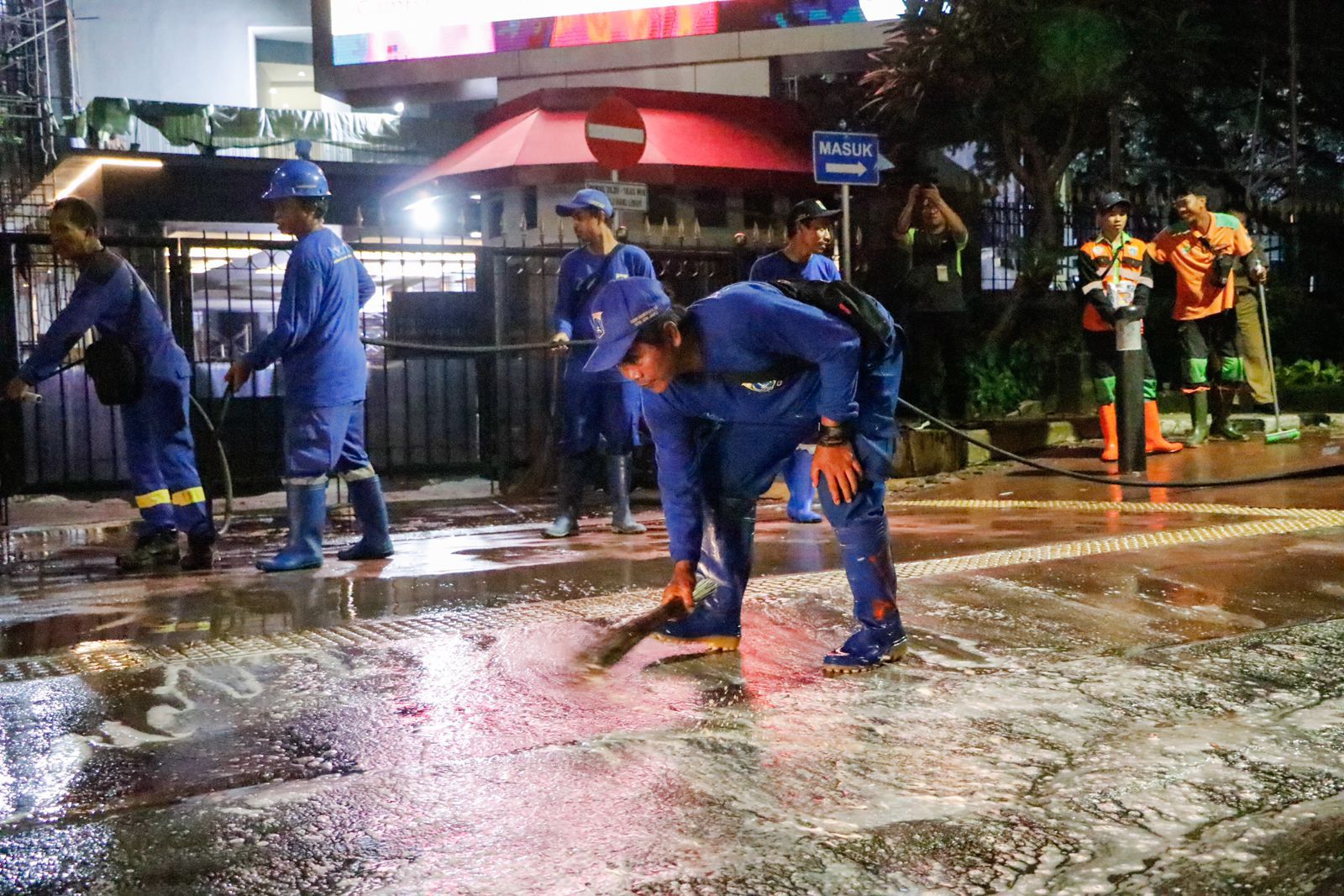 Penerintah Kota Administrasi Jakarta Pusat menggelar kegiatan bersih-bersih trotoar di sekitar kawasan Bundaran HI hingga simpang Kebon Sirih, depan Mal FX Sudirman, dan kawasan Patung Kuda hingga Harmoni, pada Selasa (20/6) malam.