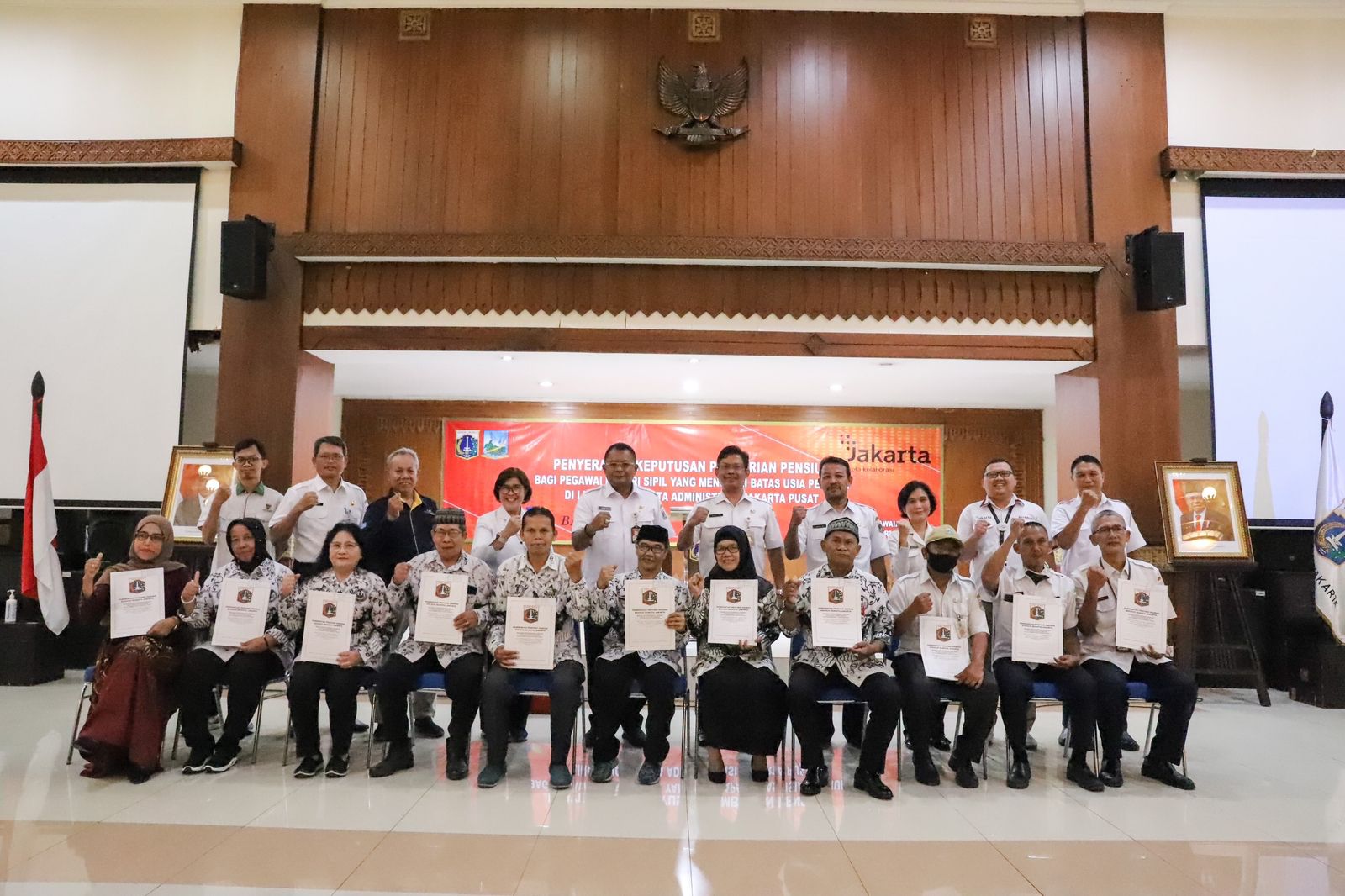 Plt Wakil Wali Kota Jakarta Pusat Iqbal Akbarudin membuka kegiatan penyerahan SK Pensiun Terhitung Mulai Tanggal (TMT) 1 Febuari 2023 di Ruang Serbaguna Utama, Kantor Wali Kota Jakarta Pusat, Gambir, Rabu (25/1).