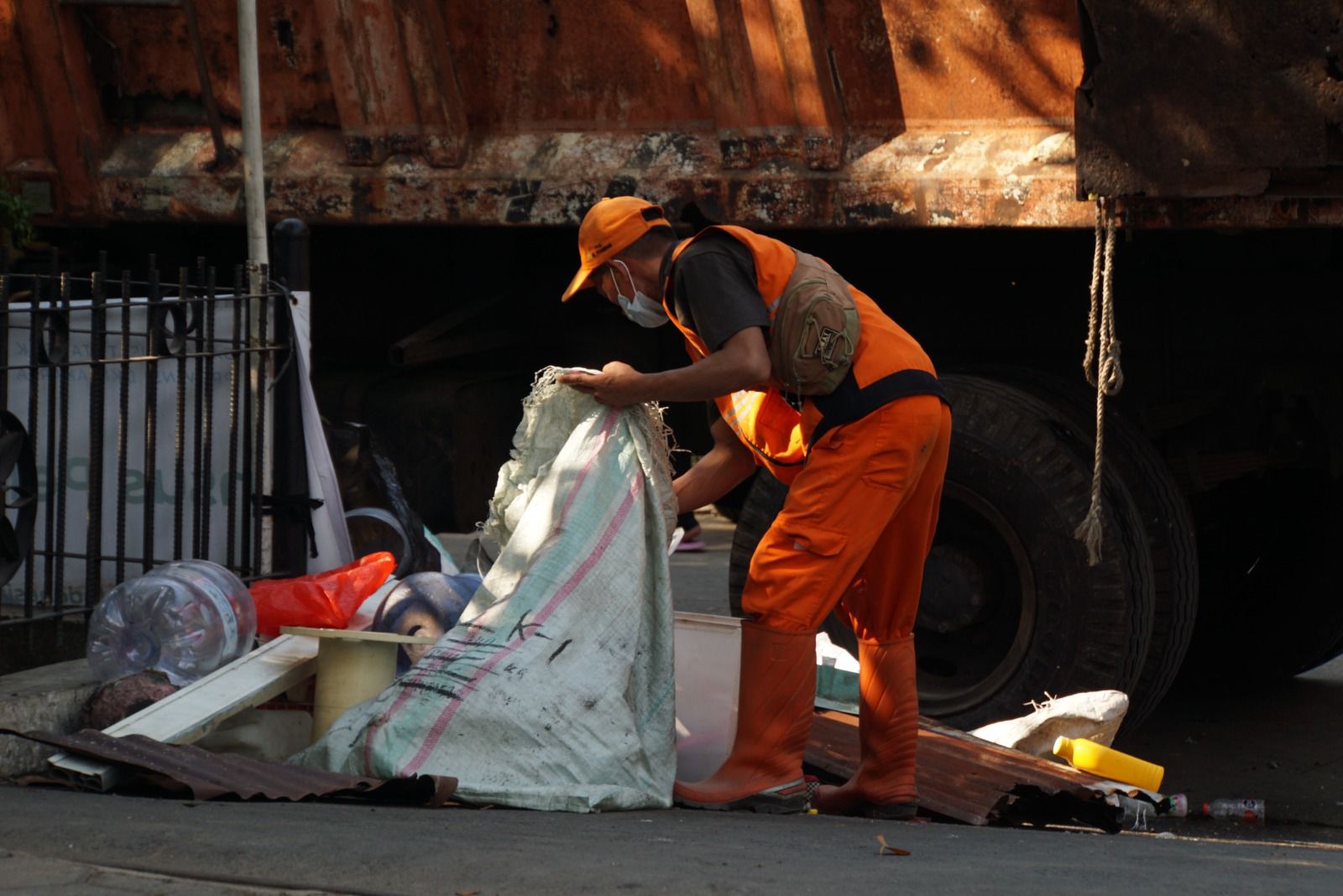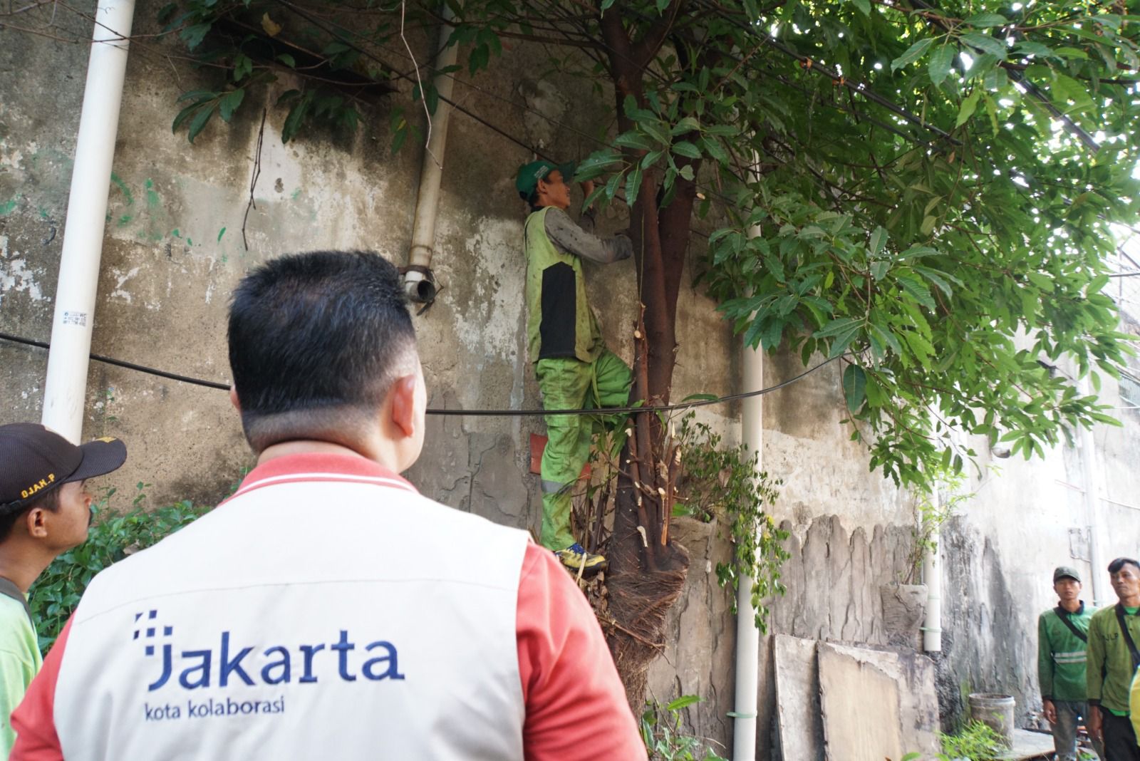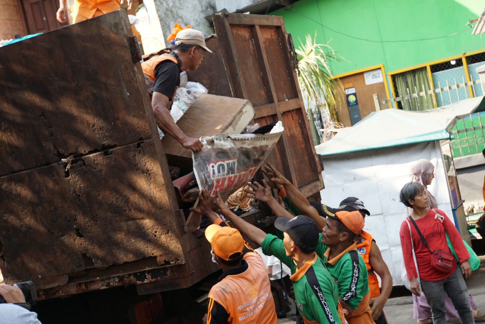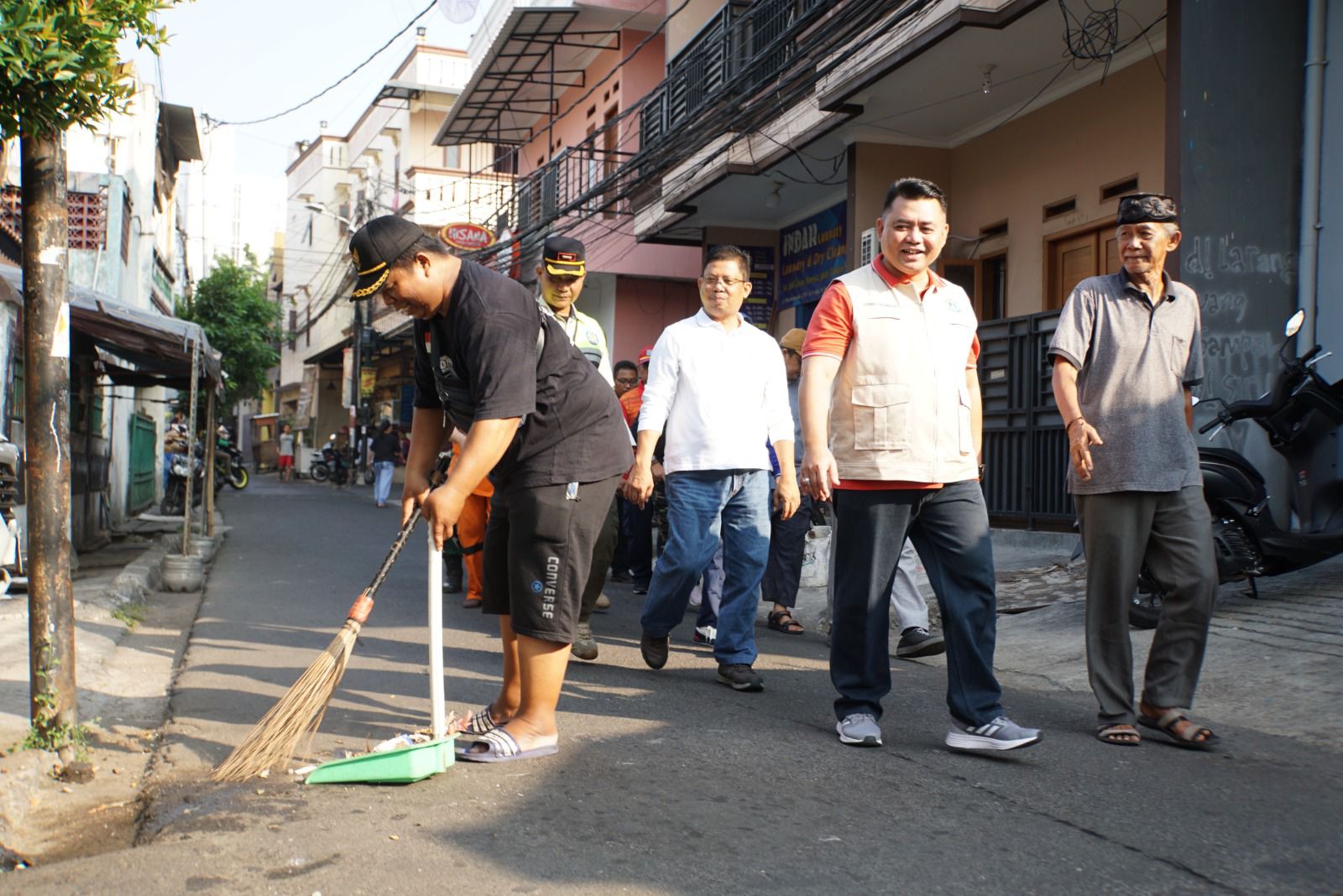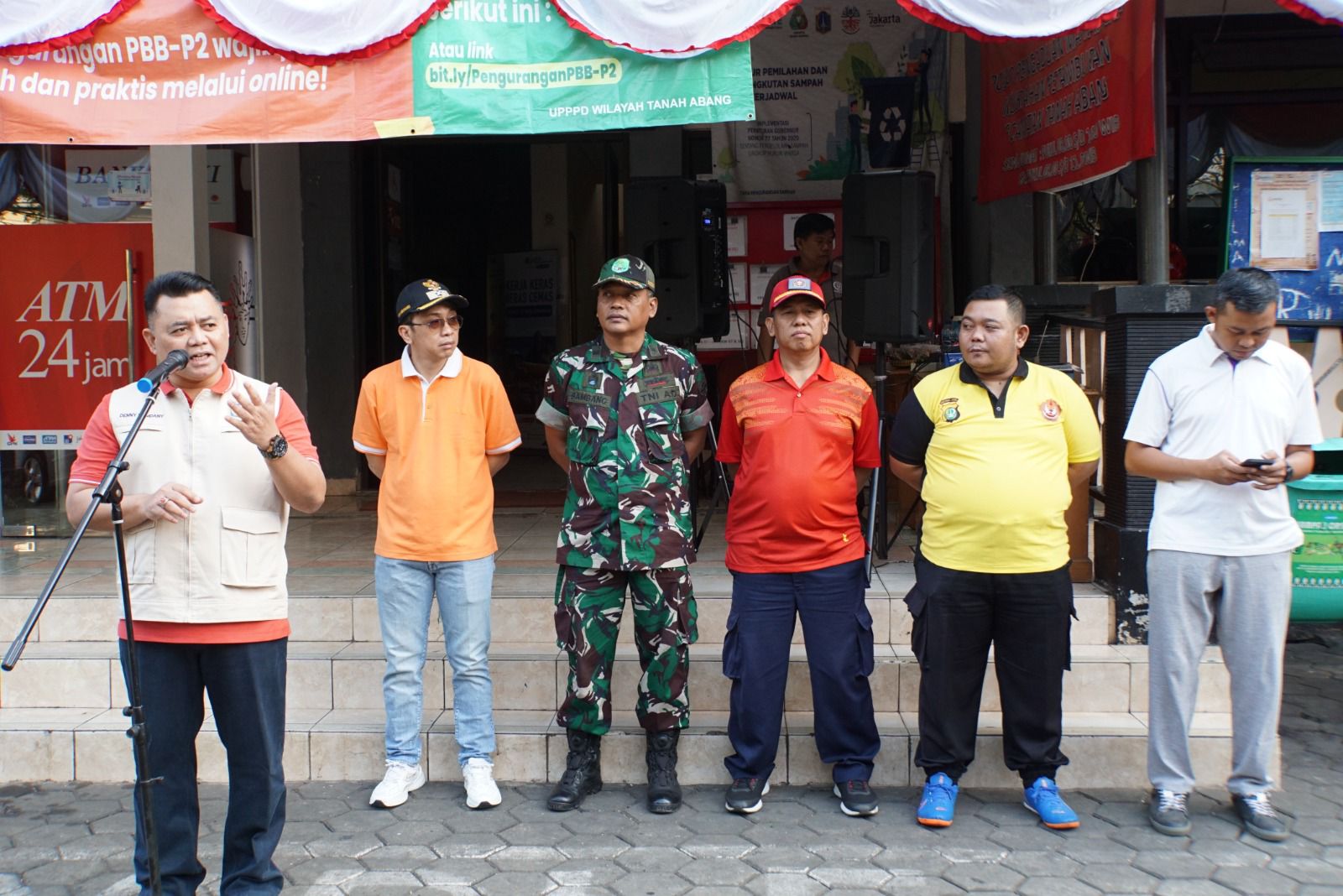 Guna menciptakan lingkungan yang bersih, aman, dan nyaman, jajaran Kelurahan Petamburan melaksanakan kerja bakti di wilayah RW 03 Kelurahan Petamburan, Kecamatan Tanah Abang, Jakarta Pusat, Minggu (23/7).