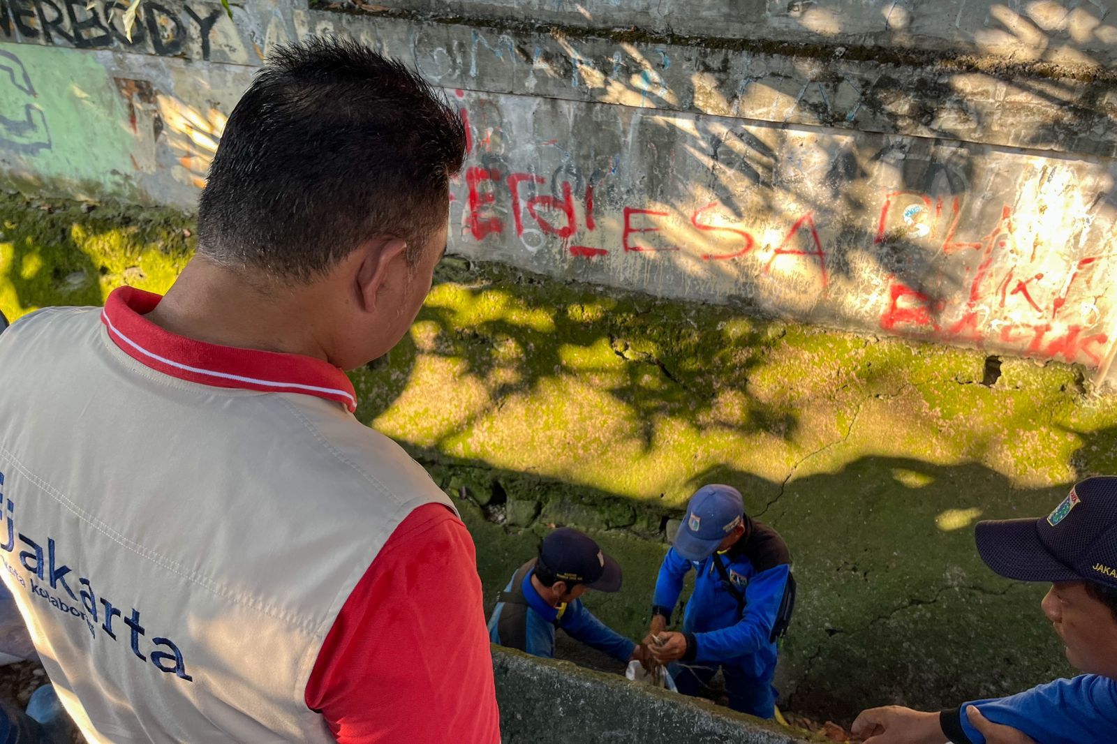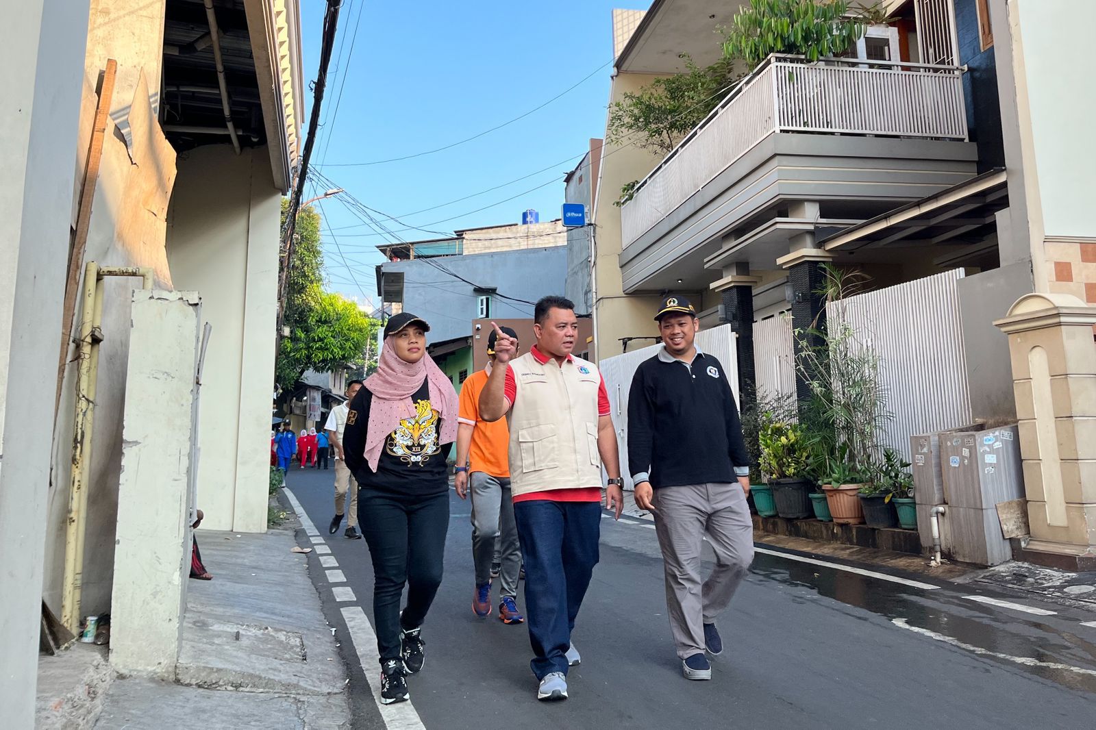 Asisten Pemerintahan Kota Administrasi Jakarta Pusat Denny Ramdany meninjau pelaksanaan kegiatan kerja bakti gerebek lumpur di wilayah RW 08, Kelurahan Petamburan, Kecamatan Tanah Abang, Jakarta Pusat, Minggu (11/6).