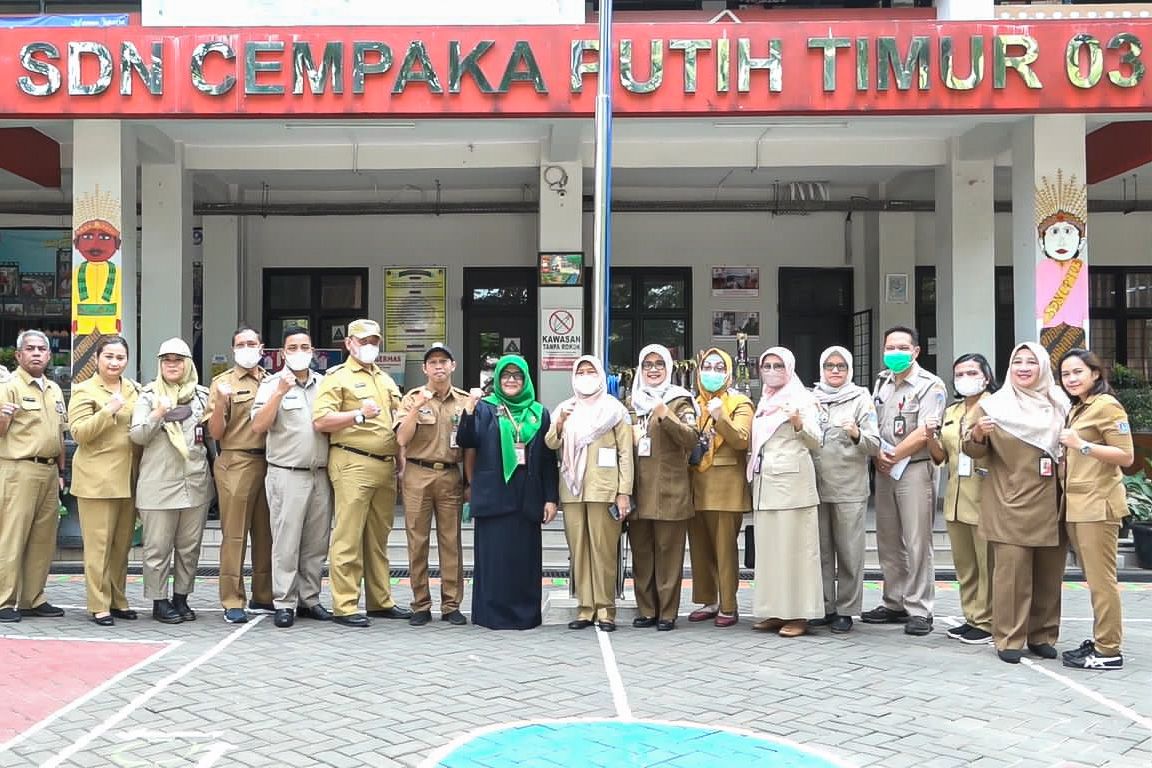 Tim penilai sekolah Adiwiyata mendatangi SDN 03 Cempaka Putih Timur, Kecamatan Cempaka Putih, Jakarta Pusat, pada Selasa (7/3) pagi.