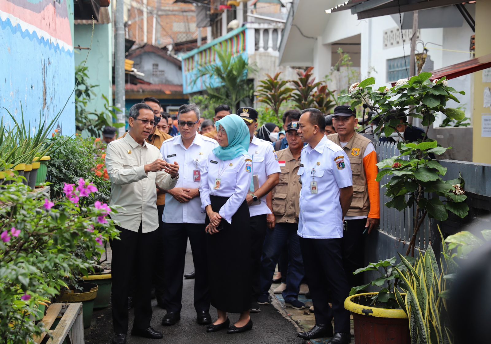 Penjabat (Pj) Gubernur DKI Jakarta Heru Budi Hartono bersama Menteri Kesehatan (Menkes) Budi Gunadi Sadikin meninjau pos pelayanan terpadu (Posyandu) Cempaka III, Kelurahan Cempaka Putih Barat, Kecamatan Cempaka Putih, Selasa (22/2).