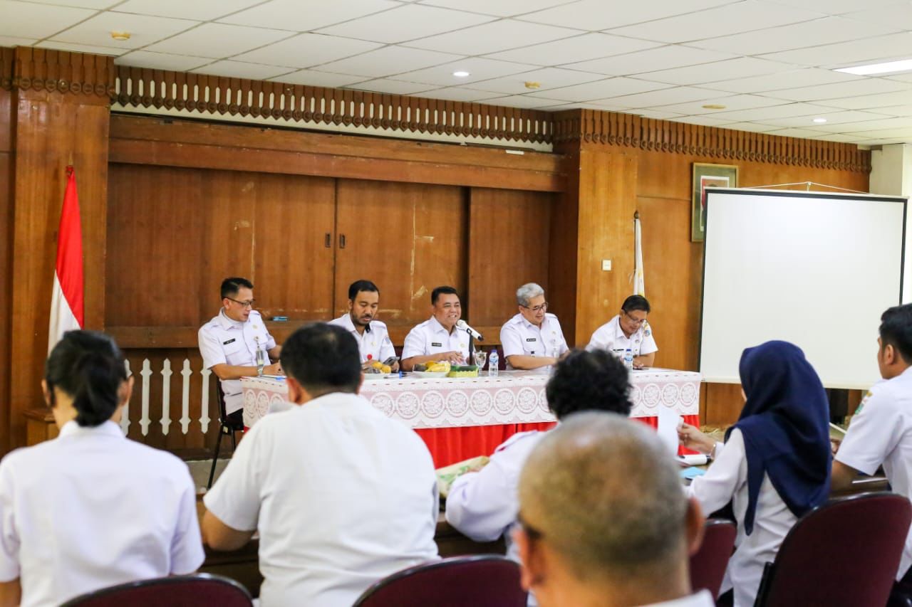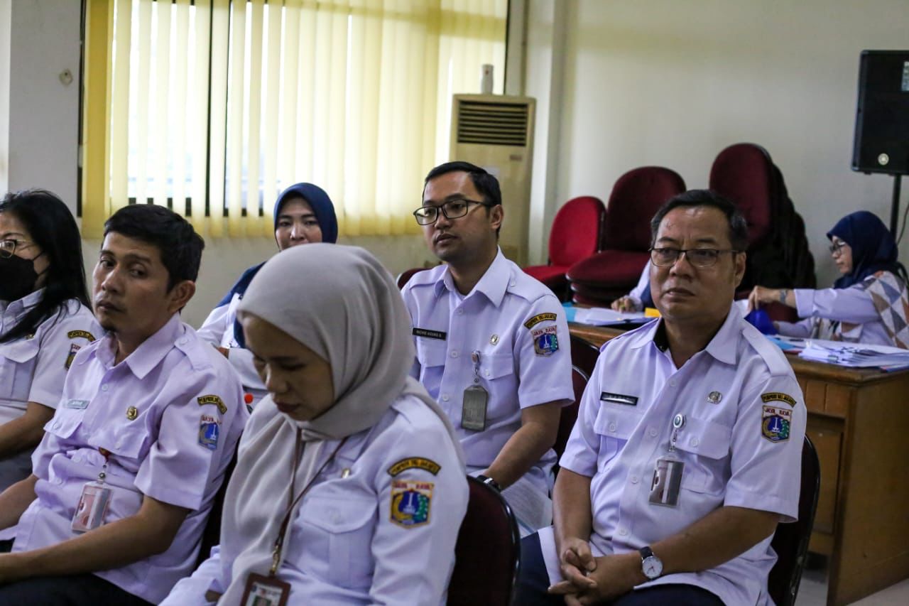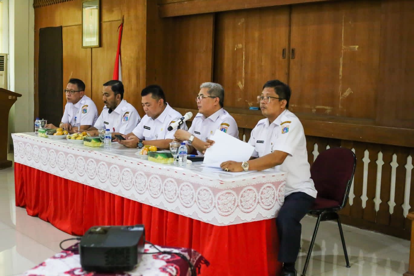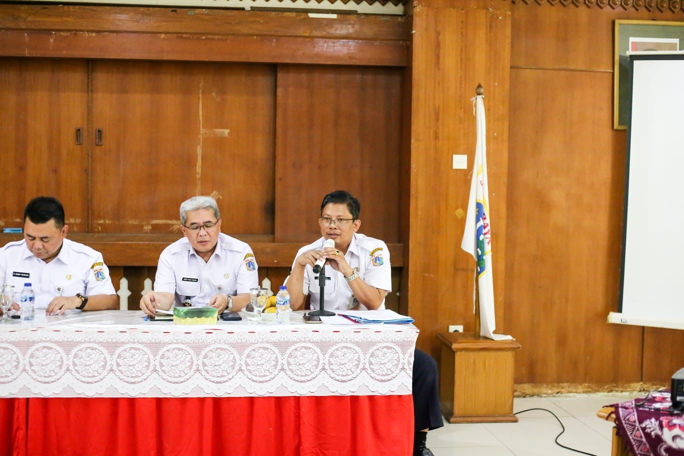 Asisten Pemerintahan Setko Administrasi Jakarta Pusat Denny Ramdany melakukan Monitoring dan Evaluasi Pelayanan Publik, Administrasi Kepegawaian dan Ketatalaksanaan Tahun 2023 di Aula Kantor Kecamatan Kemayoran, Jakarta Pusat, Rabu (7/6).