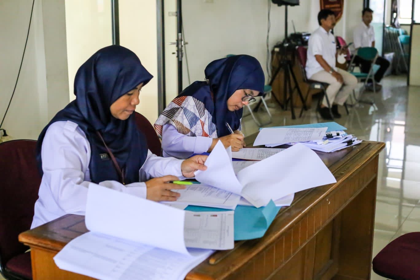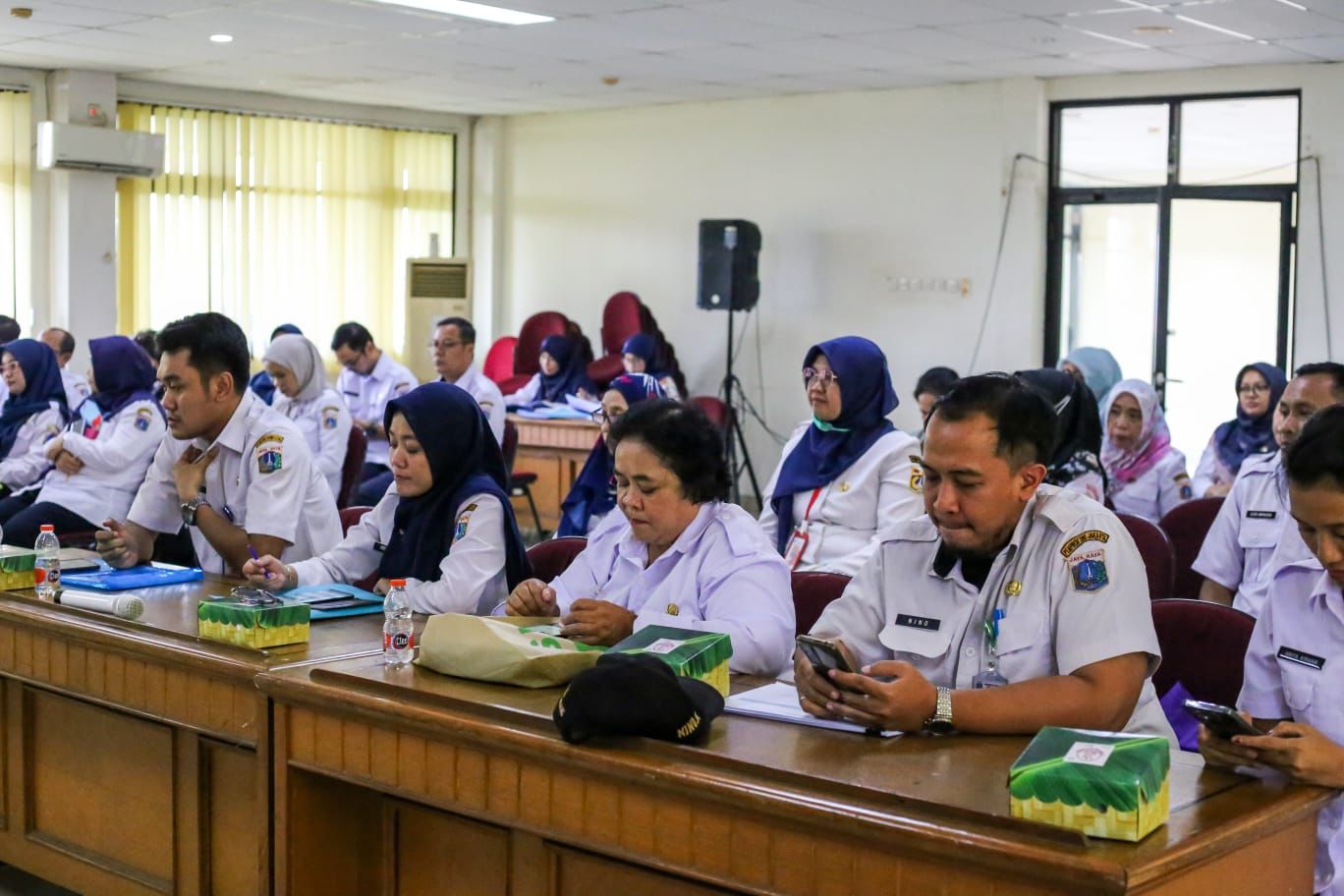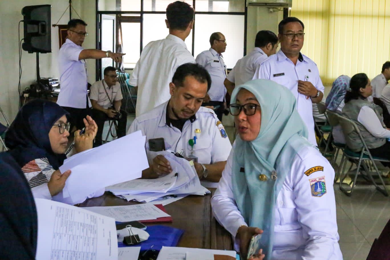 Asisten Pemerintahan Setko Administrasi Jakarta Pusat Denny Ramdany melakukan Monitoring dan Evaluasi Pelayanan Publik, Administrasi Kepegawaian dan Ketatalaksanaan Tahun 2023 di Aula Kantor Kecamatan Kemayoran, Jakarta Pusat, Rabu (7/6).