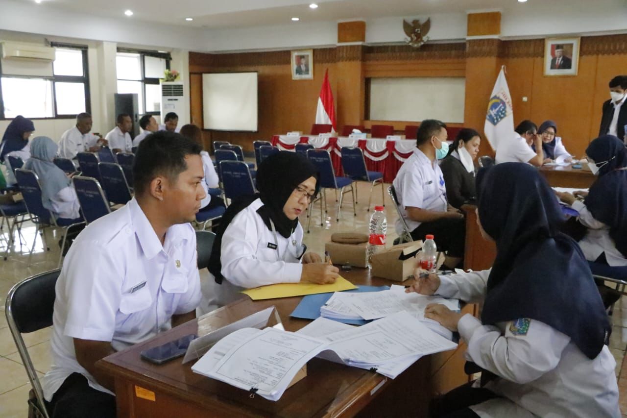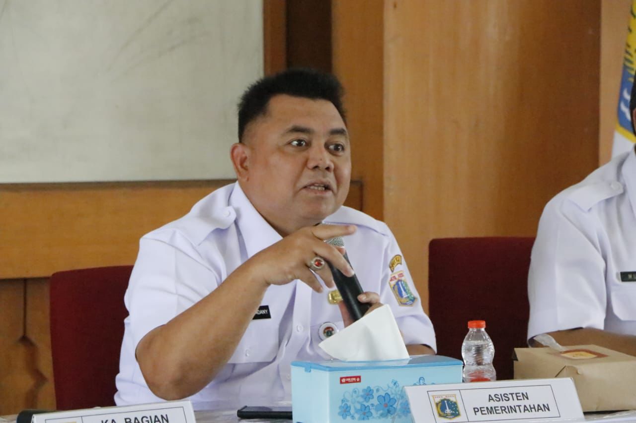 Asisten Pemerintahan (Aspem) Setko Administrasi Jakarta Pusat Denny Ramdany kembali melakukan monitoring, evaluasi pelayanan publik, administrasi kepegawaian, dan ketatalaksanaan Tahun 2023, di Aula Kantor Kecamatan Johar Baru, Jakarta Pusat, Rabu (14/6).