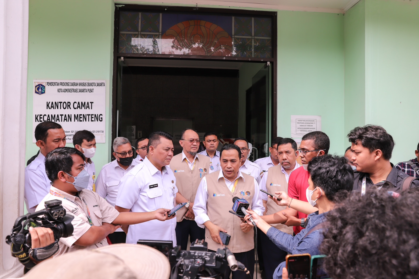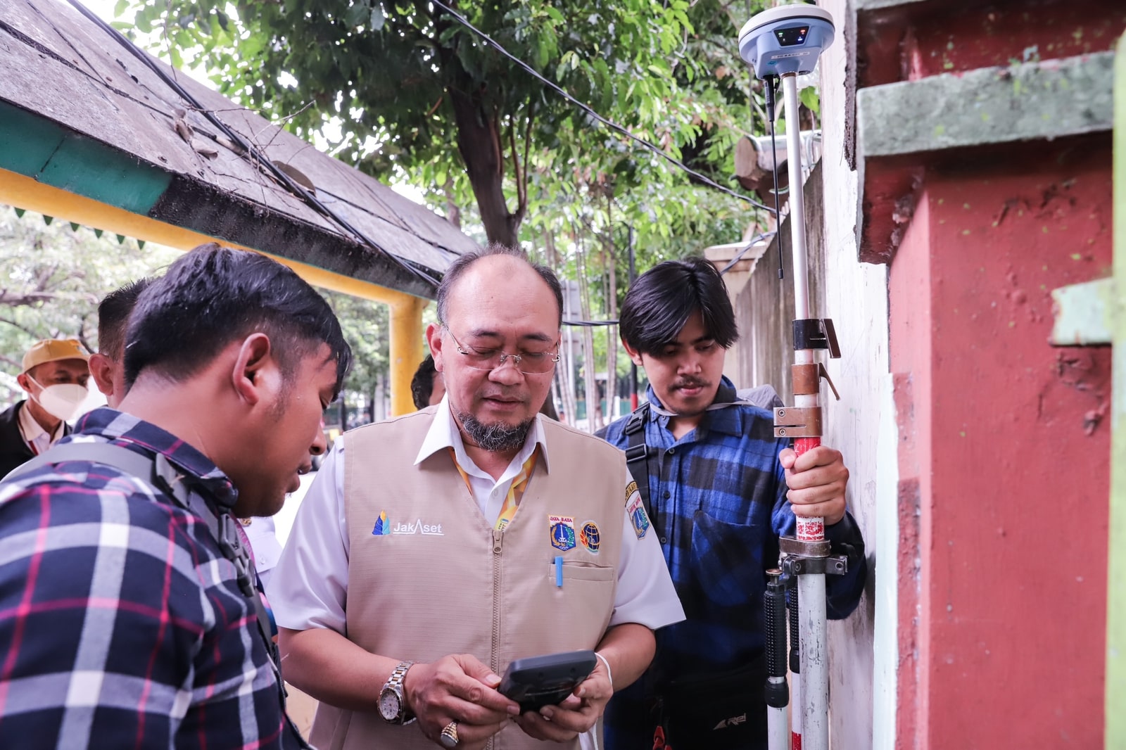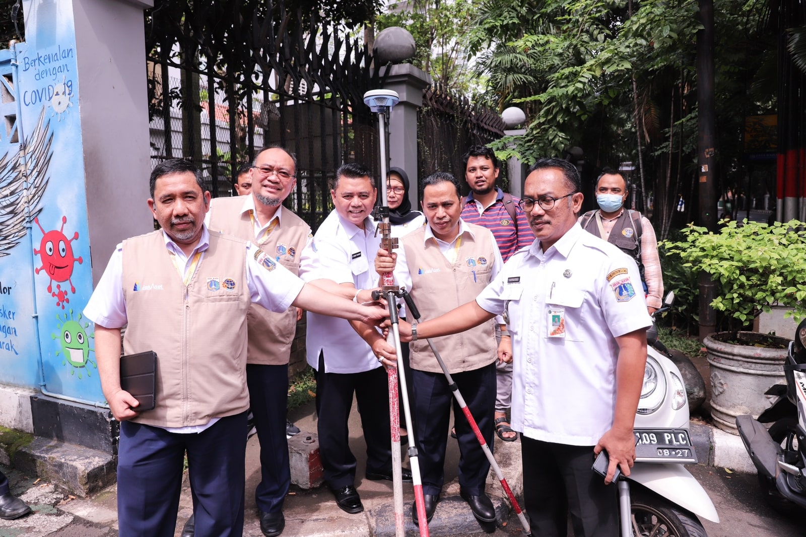 Kepala Badan Pengelola Aset Daerah (BPAD) Provinsi DKI Jakarta Reza Phahlevi didampingi Asisten Pemerintahan Kota Administrasi Jakarta Pusat Denny Ramdany memimpin pengukuran tanah dalam rangka pensertifikatan aset milik Pemprov DKI Jakarta oleh Kantor Jasa Surveyor Berlisensi (KJSB) di Kantor Kecamatan Menteng, Jakarta Pusat, Rabu (4/1).