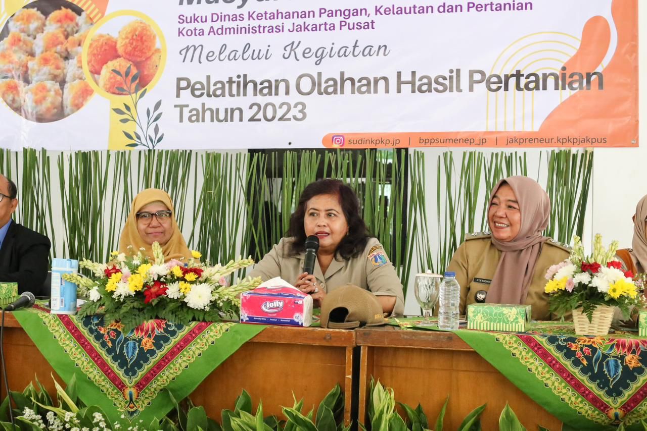 Kepala Suku Dinas Ketahanan Pangan, Kelautan, dan Pertanian (Sudin KPKP) Kota Administrasi Jakarta Pusat Penty Yunesi Pudyastuti membuka pelatihan pemberdayaan masyarakat Johar Baru, di RPTRA Pulo Gundul, Kecamatan Johar Baru, Senin (19/6).