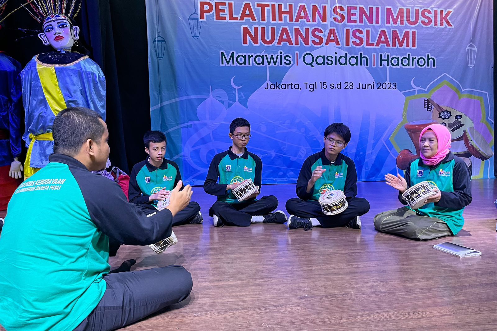 Suku Dinas Kebudayaan Kota Administrasi Jakarta Pusat menggelar Pelatihan Seni Musik Nuansa Islami di Gedung PPSB M. Mashabi, Jalan KH Mas Mansyur, Kecamatan Tanah Abang, Jakarta Pusat, Kamis (15/6).