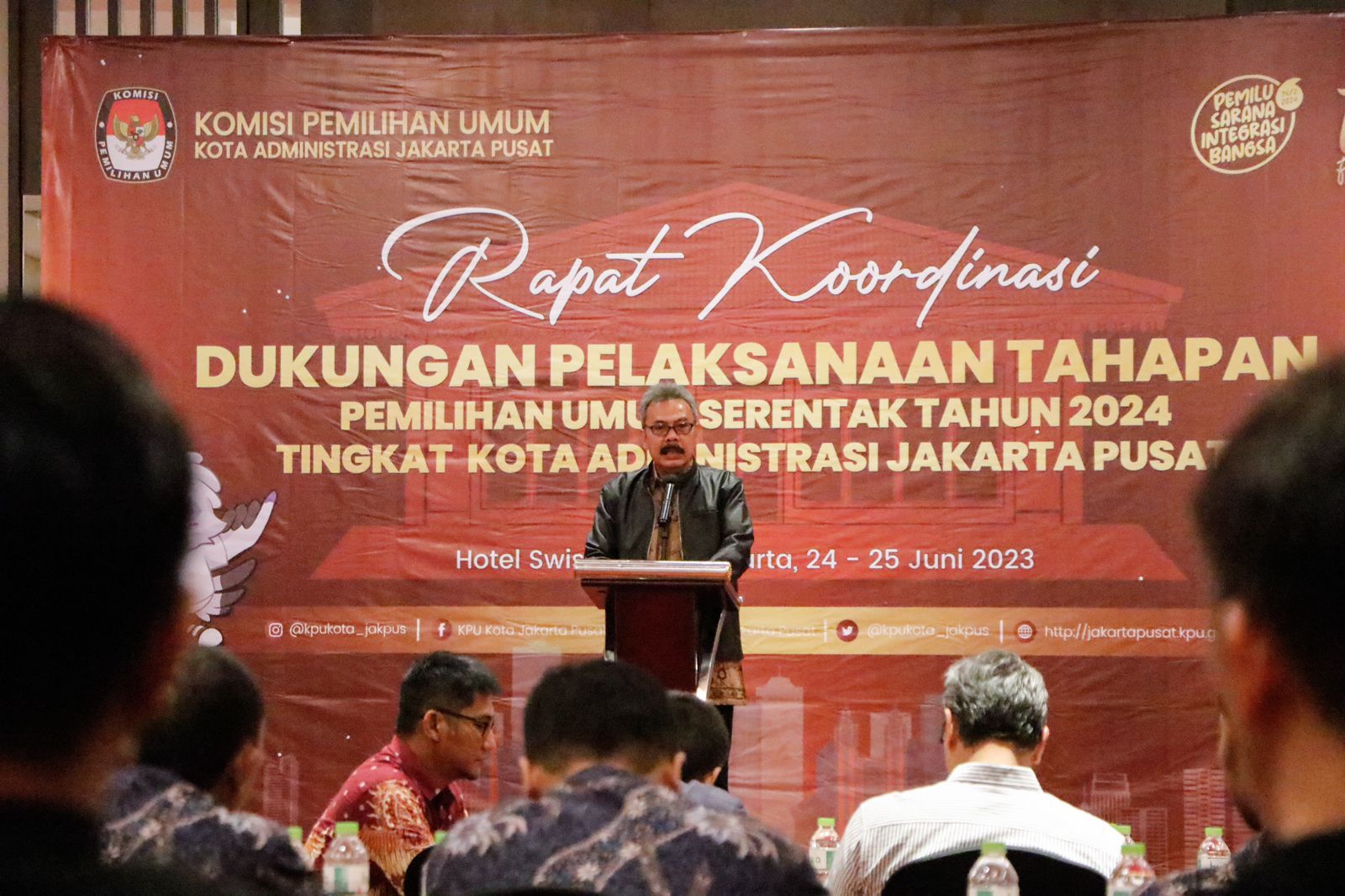 Wali Kota Administrasi Jakarta Pusat Dhany Sukma menghadiri acara pelepasan Komisioner Komisi Pemilihan Umum (KPU) Jakarta Pusat periode 2018-2023 di Swiss Bell in Hotel, Kecamatan Kemayoran, Sabtu (24/6).