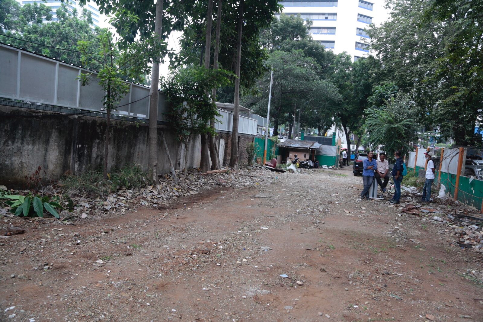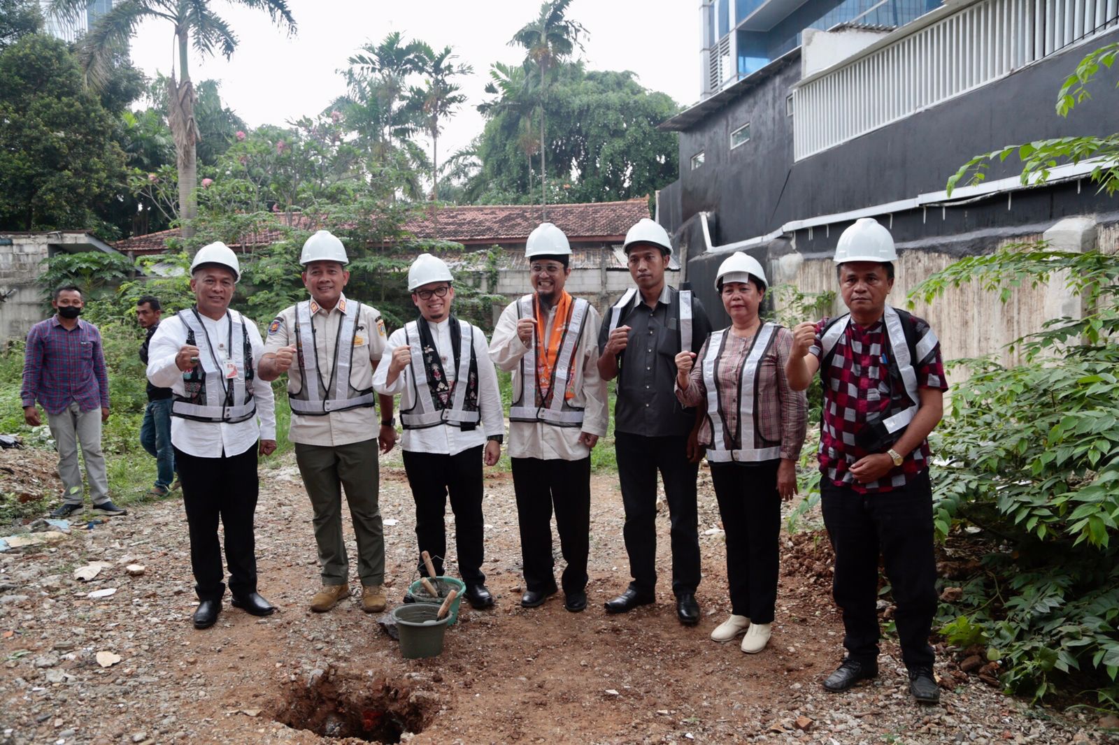 Wakil Wali Kota Administrasi Jakarta Pusat Chaidir mendampingi Kepala Satuan Polisi Pamong Praja (Kasatpol PP) DKI Jakarta Arifin dalam peletakan batu pertama pembangunan Markas Komando (Mako) Satpol PP di lahan eks SDN 01 Kebon Sirih, Kecamatan Menteng, Selasa (2/5).