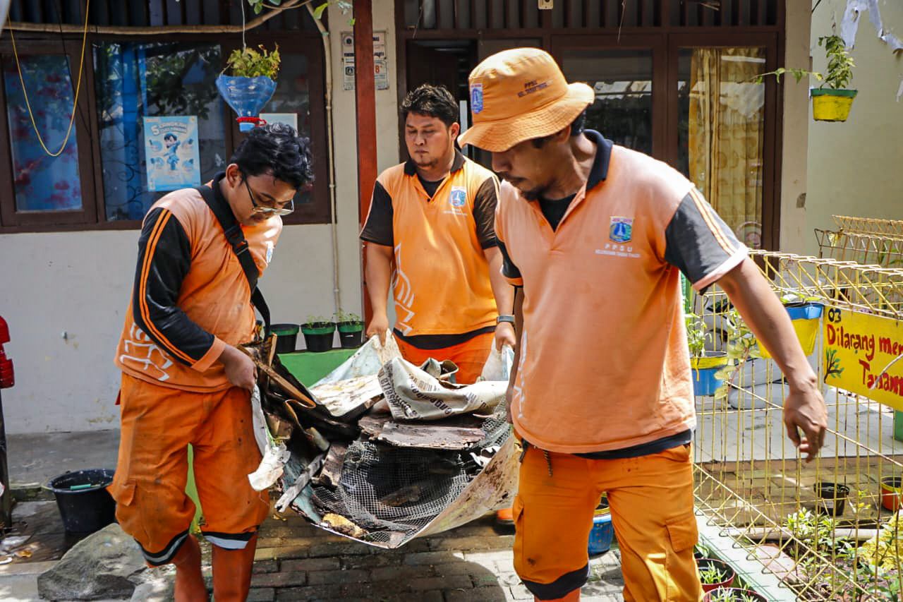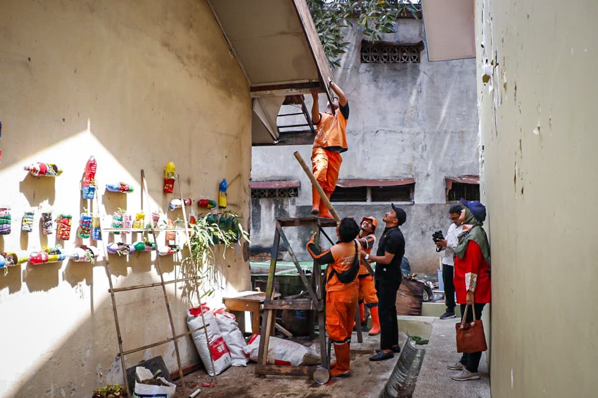 Jelang penilaian Sekolah Adiwiyata, Kelurahan Tanah Tinggi melakukan pembenahan di Sekolah Dasar Negeri (SDN) 03 dan 05 Tanah Tinggi, Kecamatan Johar Baru, Jakarta Pusat, Jumat (3/3).